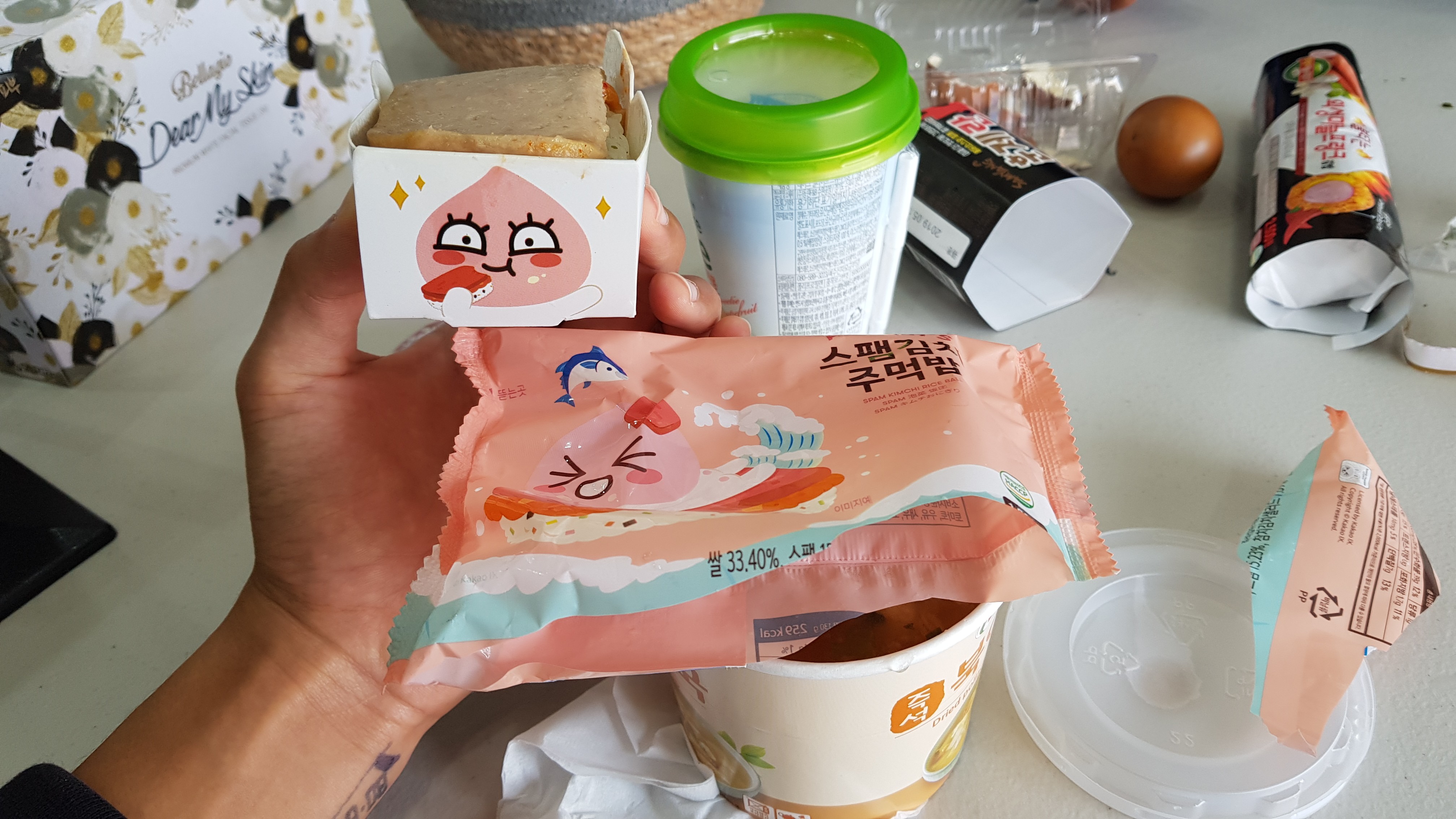 스팸 김치 주먹밥! 귀엽게 어피치 그려져 있어요 ~~