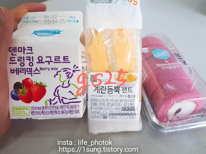 덴마크 요구르트 3개와 모찌롤딸기 계란 듬뿍 샌드위치(최-애)