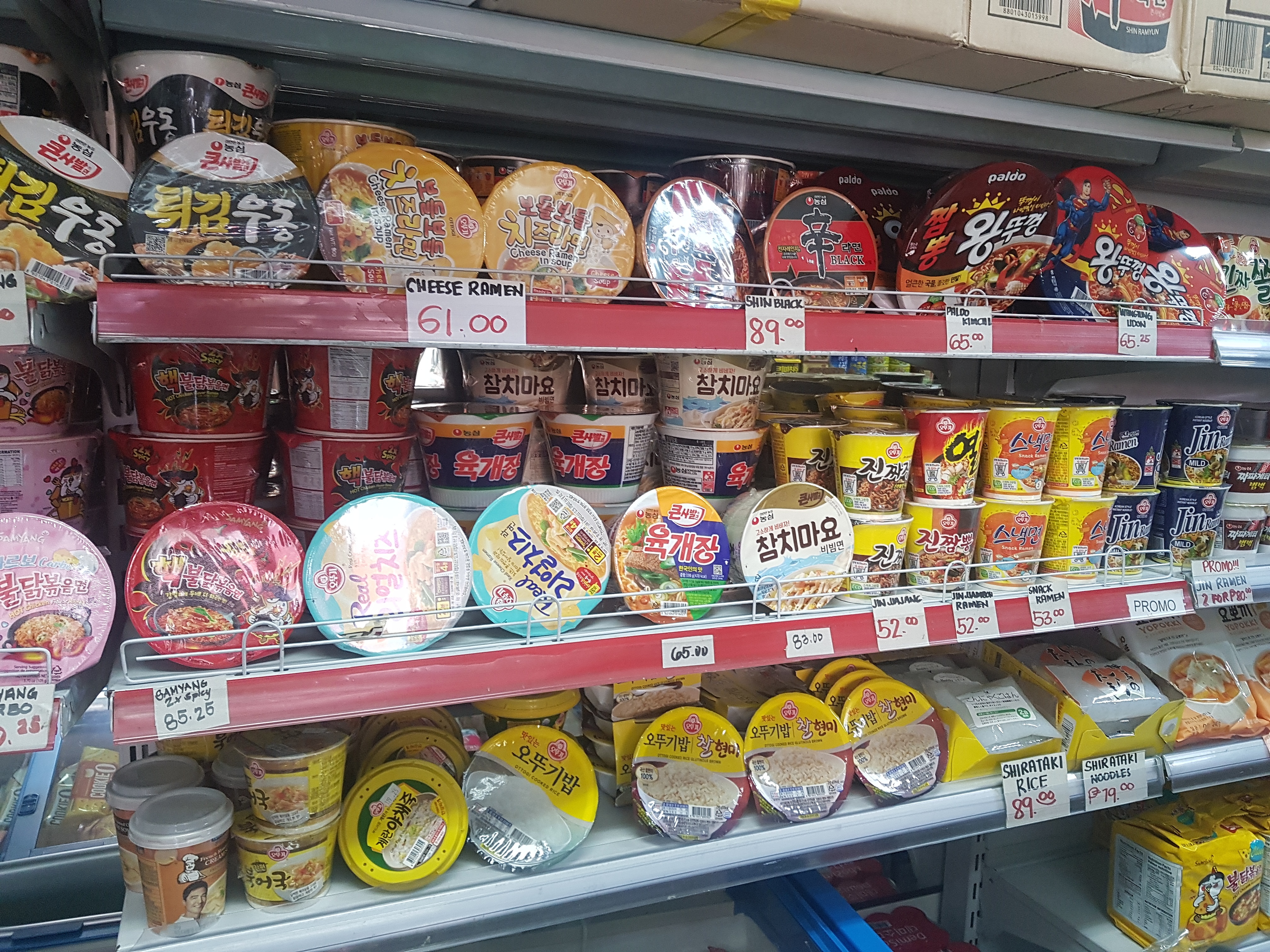 각종 라면들과 즉석 밥도 있다. 필리핀 현지 마트 세븐일레븐 같은 곳에서도 한국 라면들을 쉽게 볼 수 있다. 그래서인지 그닥 귀하게 느껴지진 않았다. 가격도 비슷한 수준! 신라면이나 진라면 같은건 쉽게 볼 수 있지만 짜파게티나 튀김우동 같은건 한인마트를 와야만 살 수 있어 사오는 걸 추천한다.