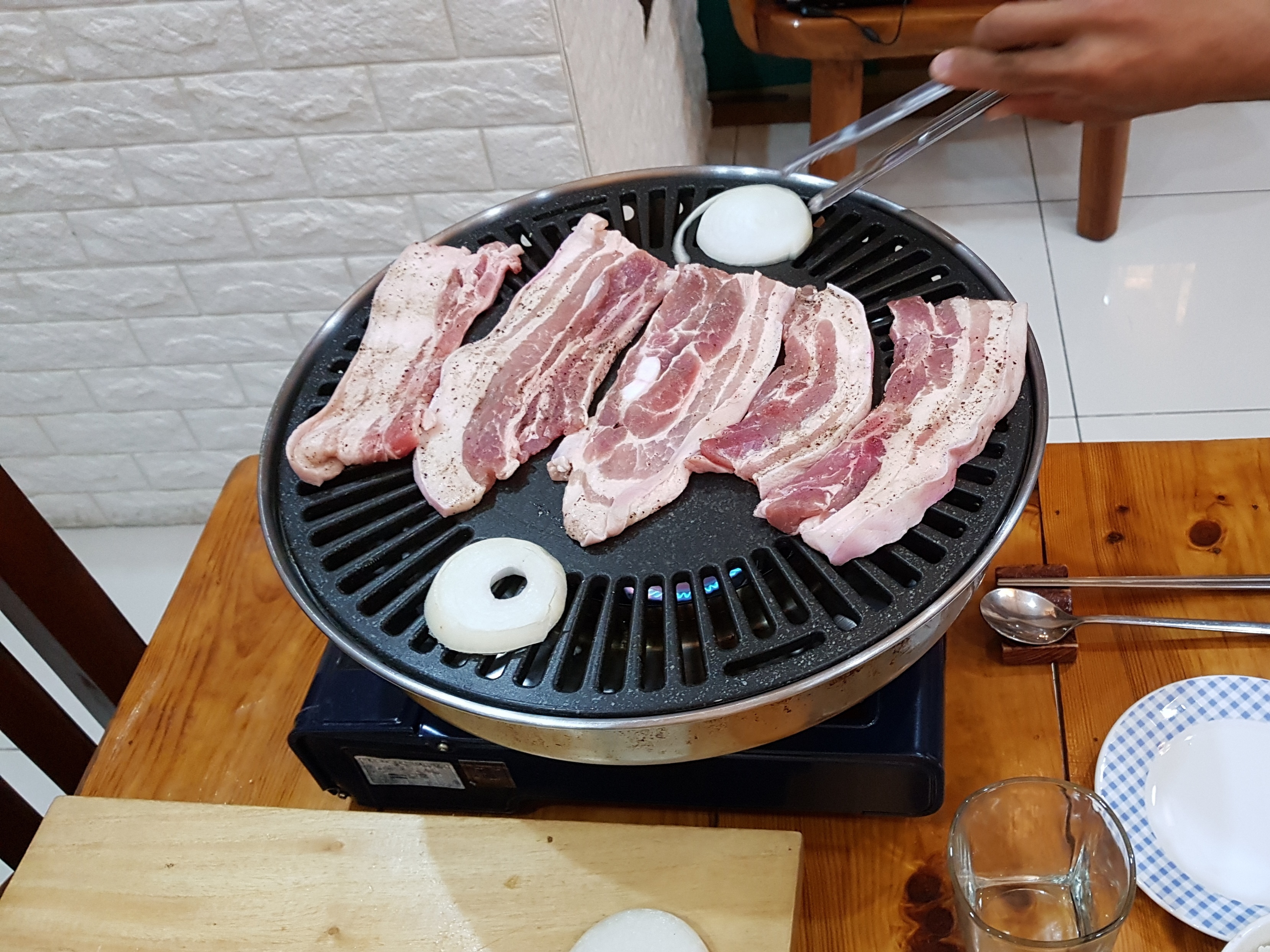 삼겹살! 필리핀 삼겹살은 뼈가 좀 많다. 어떻게 손질하는 건지 의구심이 들정도. 인당 300페소인 삼겹 무한을 시키면 밥도 무한 리필@ 가성비 갑이다.