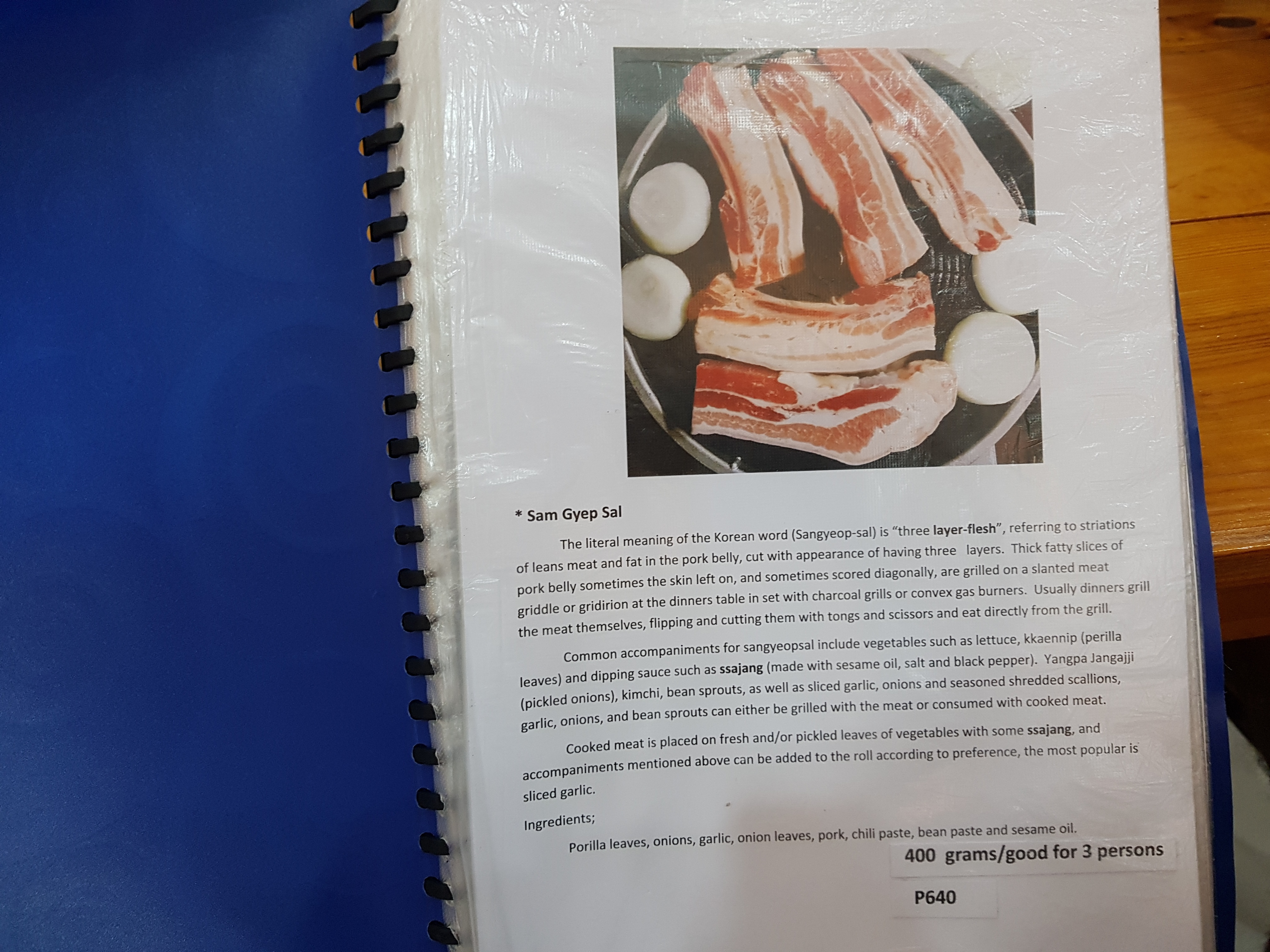 몇번이나 가서 식사를 해서 사진이 많다. 위 사진에 보이는게 김치찌개 250페소! 양이 많지 않아 삼겹살 무한리필 먹을때 주문하면 같이 먹기 좋다. 찌개류는 김치찌개와 순두부찌개가 제일 나은듯! 기본 찬 갯수가 많아 밥이 먼저나오면 일단 반은 없어져있다.