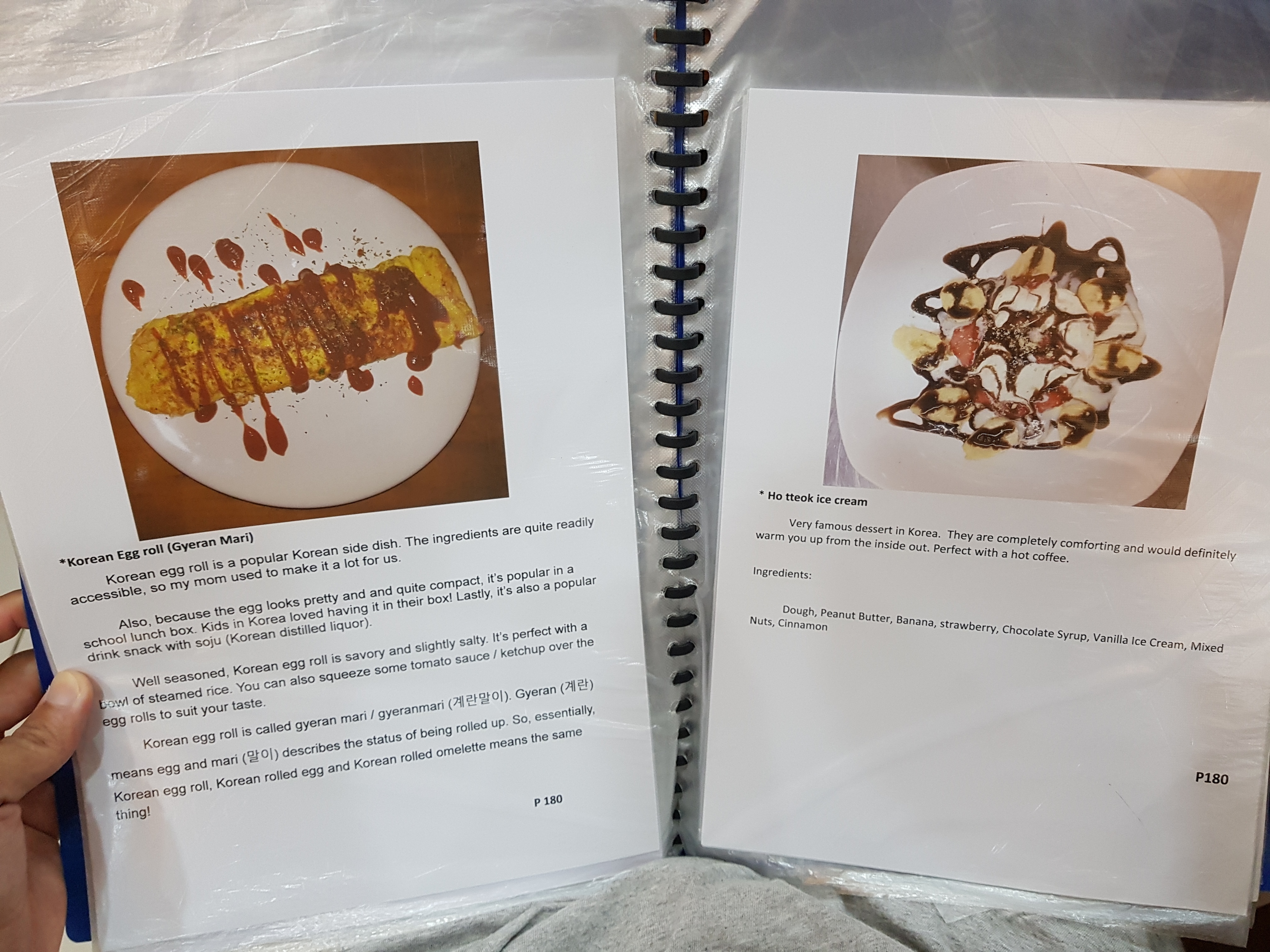 계란말이 Korean Egg Roll 180페소 먹음직스런 왕 계란말이다. 4등분으로 돼있는데 맛있어서 자주 시켜먹게 되는듯. 사장님의 안주 요리는 굳@