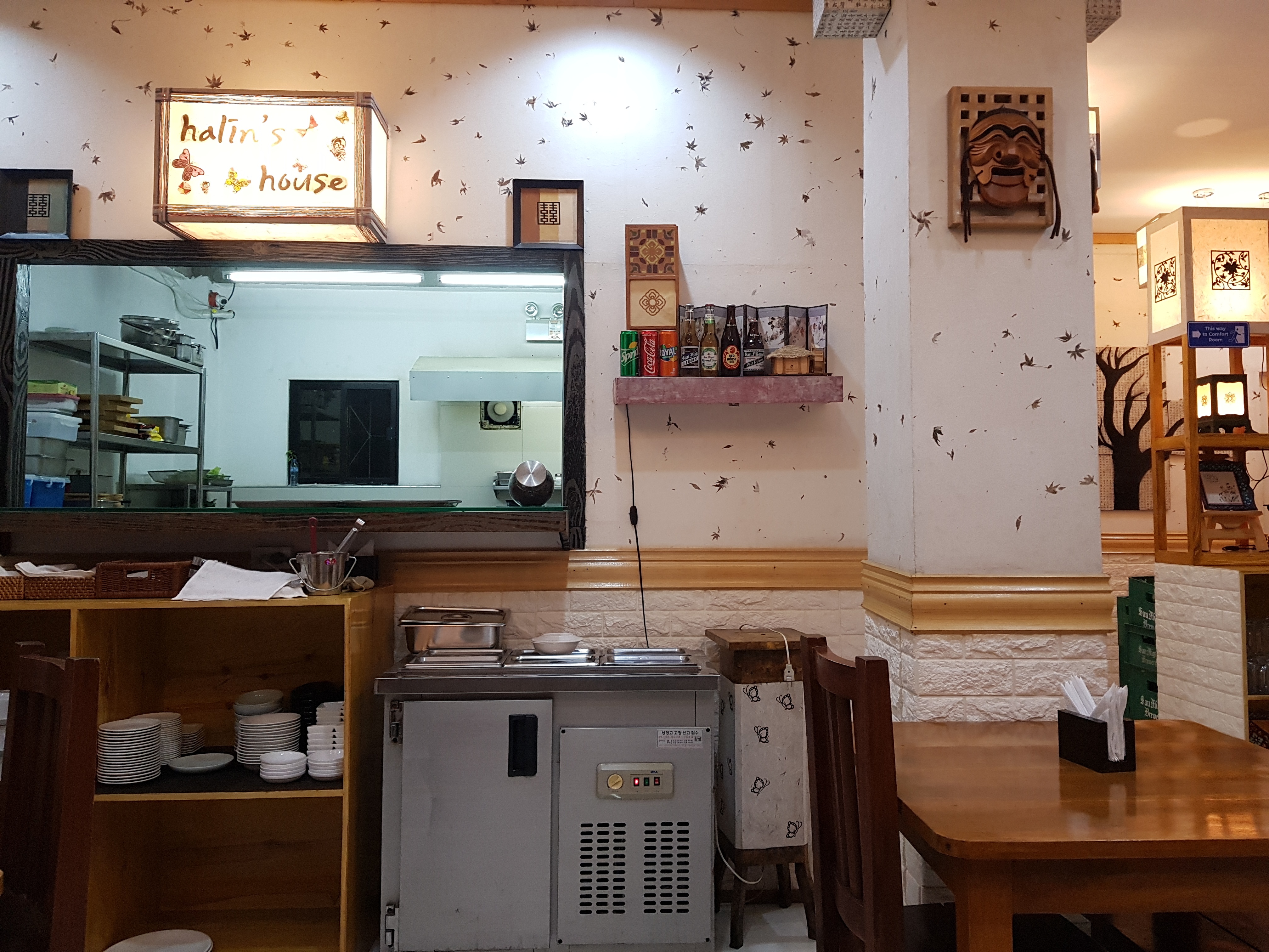 하린이네 외부 모습. 테라스도 있고 홀에도 여섯 테이블정도 있어 미리 예약하고 회식하기에도 좋은 듯! 위치는 숙소에선 걸어서 10분정도 와야하고 주변엔 아무 상점도 없어 식사 후 아이스크림을 먹으러 세븐일레븐을 간다면 20분이 걸린다 ㅠㅠ 위치가 조금 아쉽긴 하지만 개인적으로 시내에 있는것보단 훨씬 장점이 많은거 같다.
