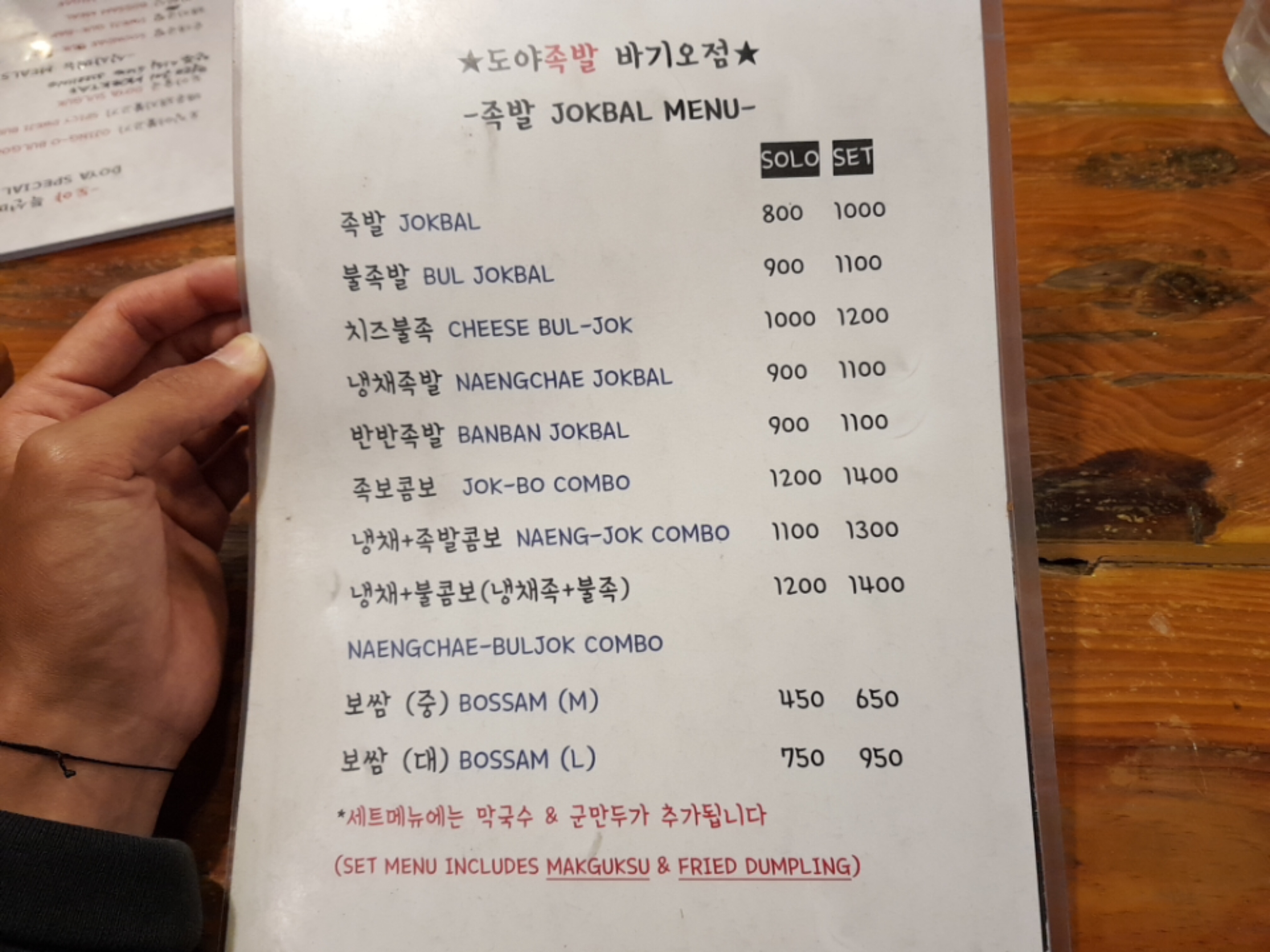음~ 한국 가격이랑 비슷해! 필리핀에선 비싼 레스토랑에 속하기 때문에 현지인들은 잘 없는거 같기도 하고. 한국 유학생들이 자주 올 듯. 내가 있는 산후안 지역에도 도야 족발이 있었다면 몇 번이고 왔을 텐데~~ 아쉽네. 우린 배가 그렇게 고프지 않았기 때문에 (성인 남자 4명) 족보콤보 세트 1,400페소 + 날치알 주먹밥 150페소 + 막국수 300페소 + 군만두 150페소까지 시켰다. 막국수는 콤보에 기본으로 나오지만 하나 더 시킴!
