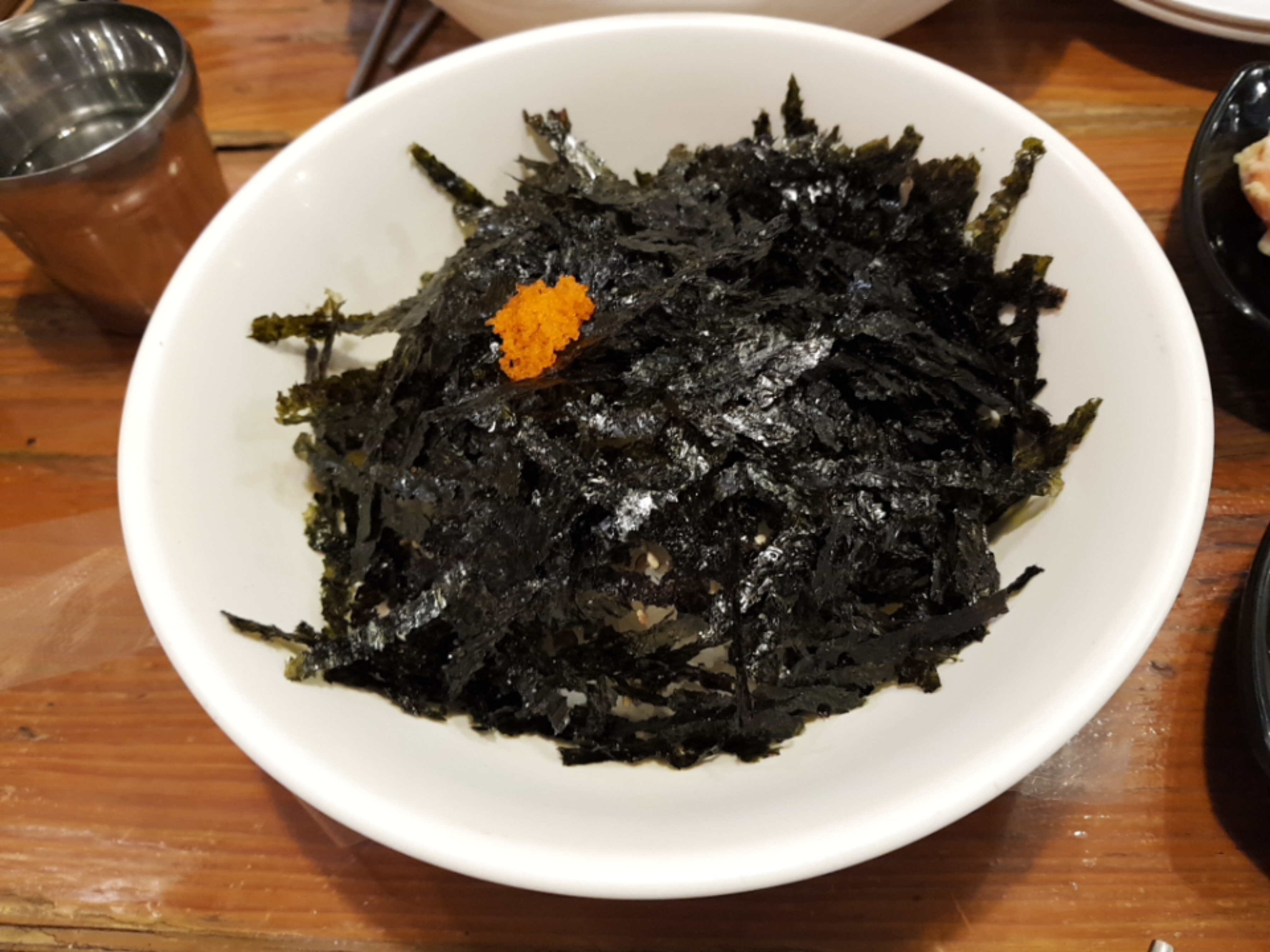 기본으로 나오는 밑반찬. 오랜만에 먹는 무말랭이라 고기 없이도 호로록 흡입했다.