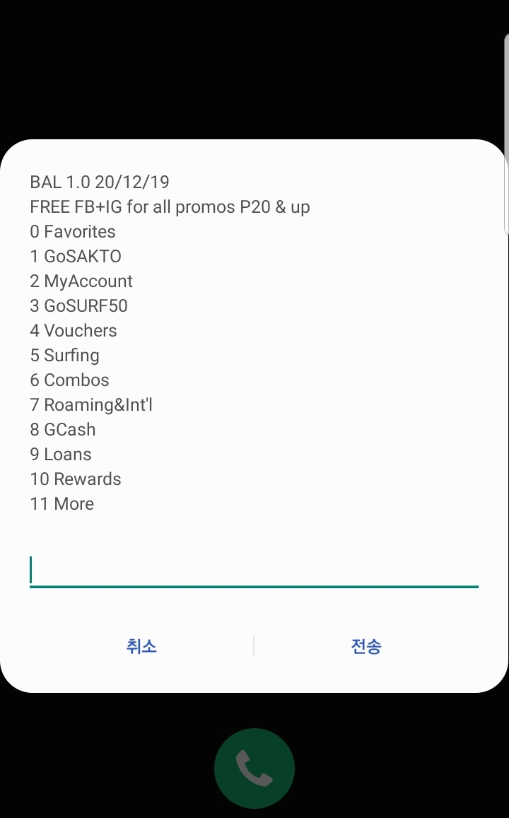 Call & Text Card Pin 6자리 숫자도 입력 후 전송을 누르자.