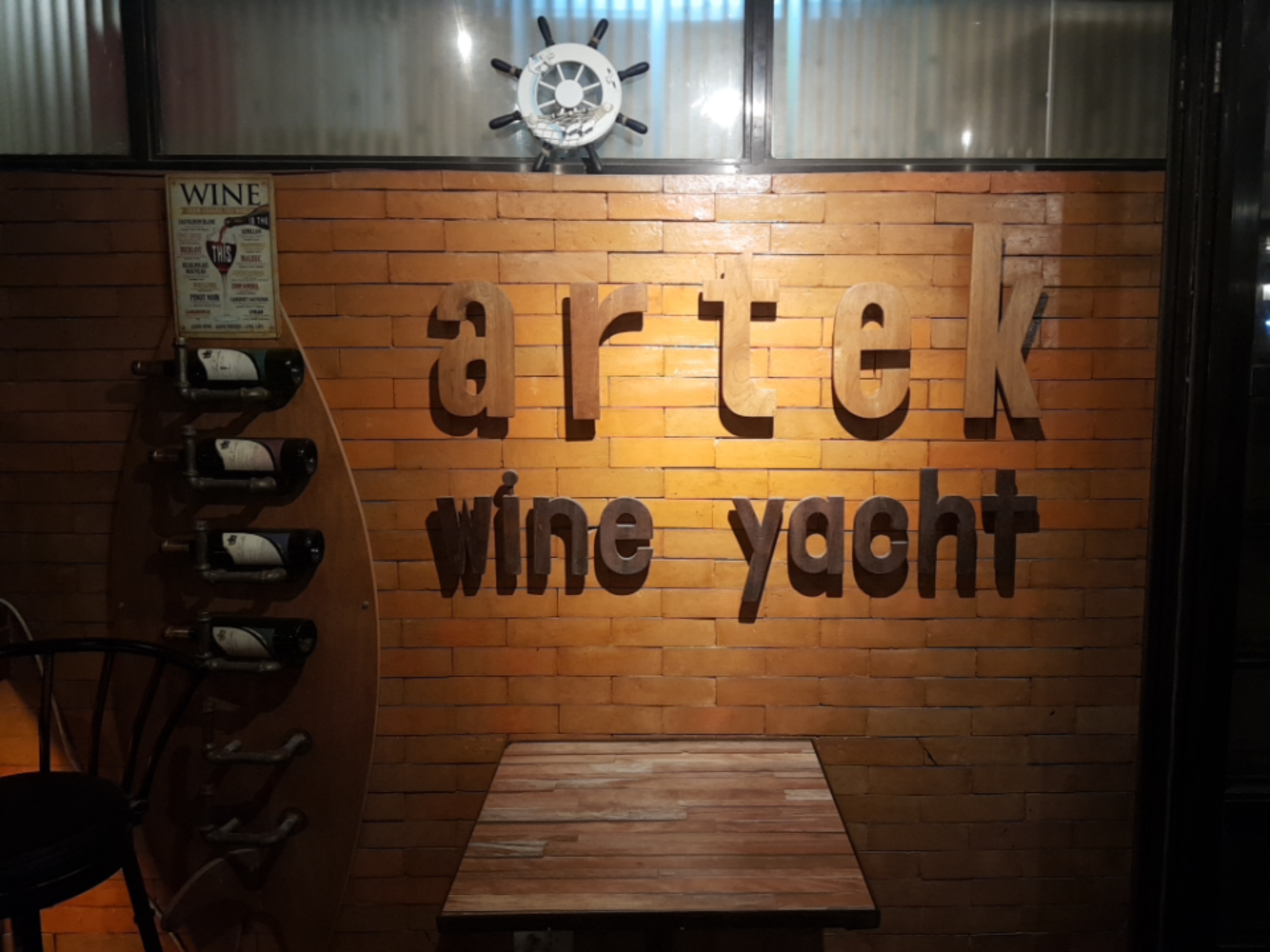 artek wine yacht! 추상네 음식을 기다리고 있는데 옆 테이블에서 굉장히 맛있어 보이는 와인을 홀짝홀짝하고 있기에 사케를 포기하고 바로 옆 가게로 왔다.
