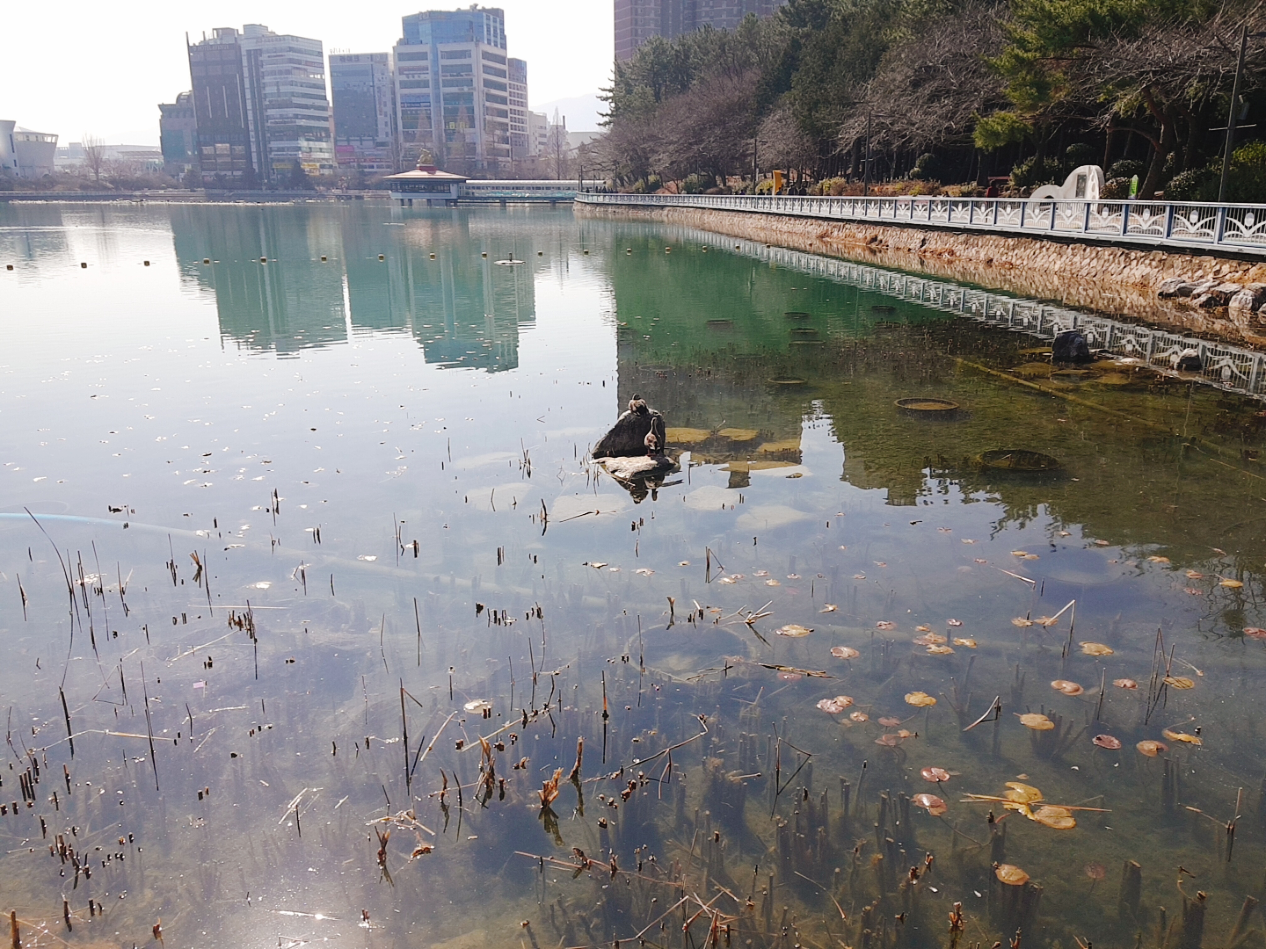 거북이가 있을까 싶어 찾아봤는데 역시 내 눈에는 보이지 않았다. 어릴때 용지공원에서 거북이를 본 적 있는거 같은데 착각인가..? 그래도 바위위에 앉아있는 오리? 도 보고
