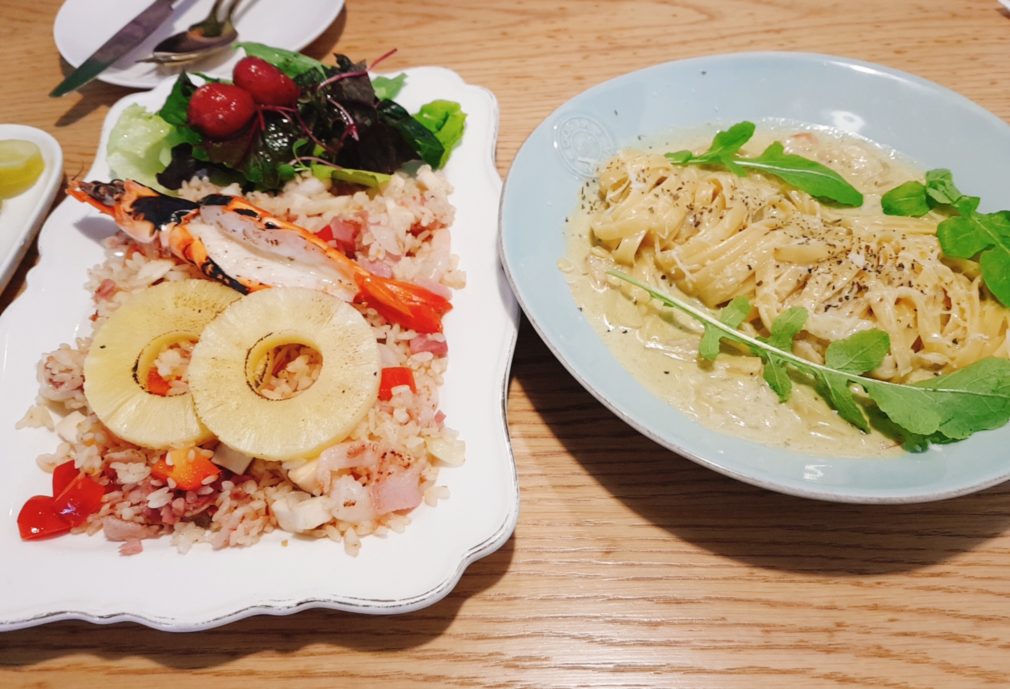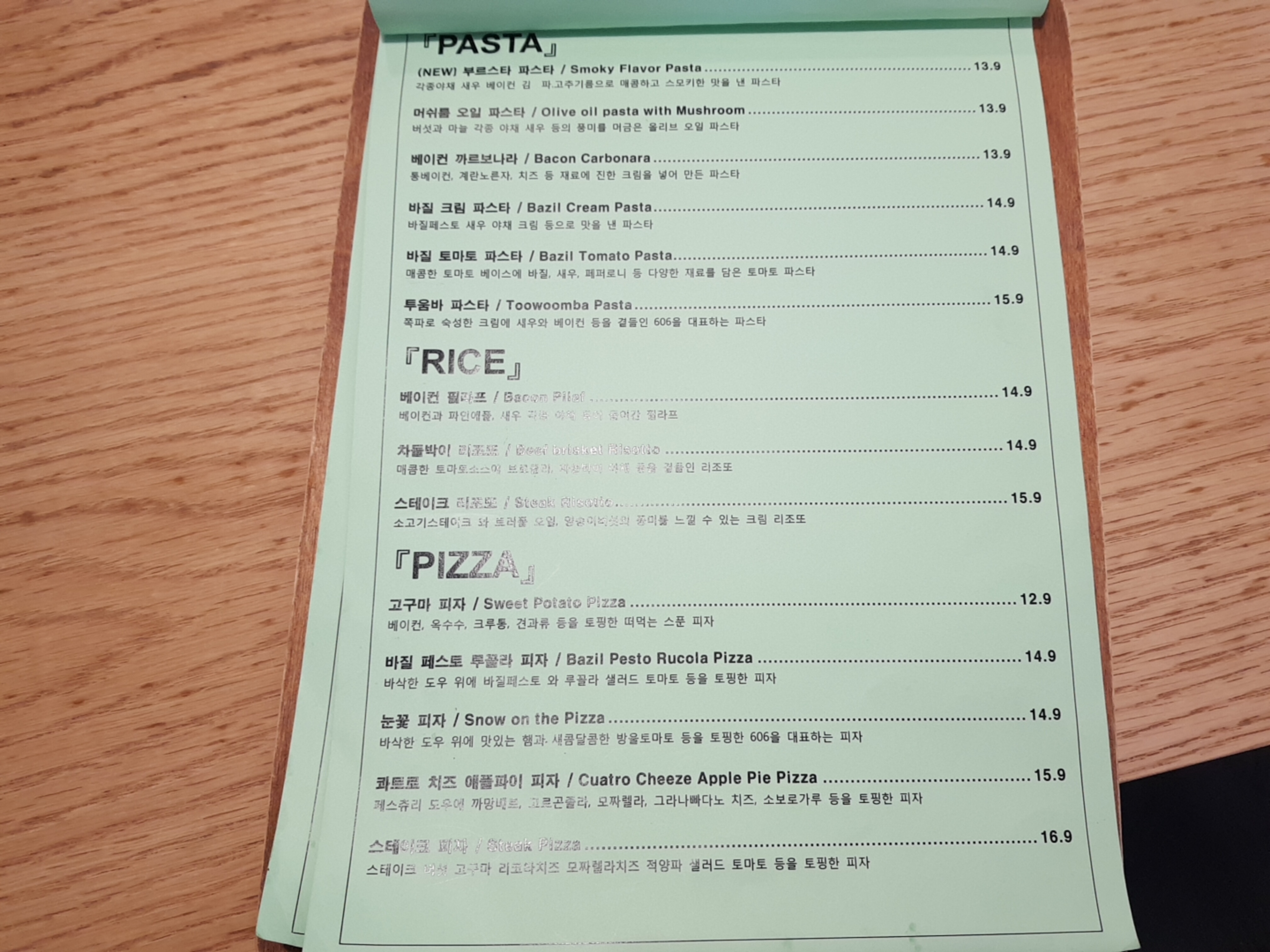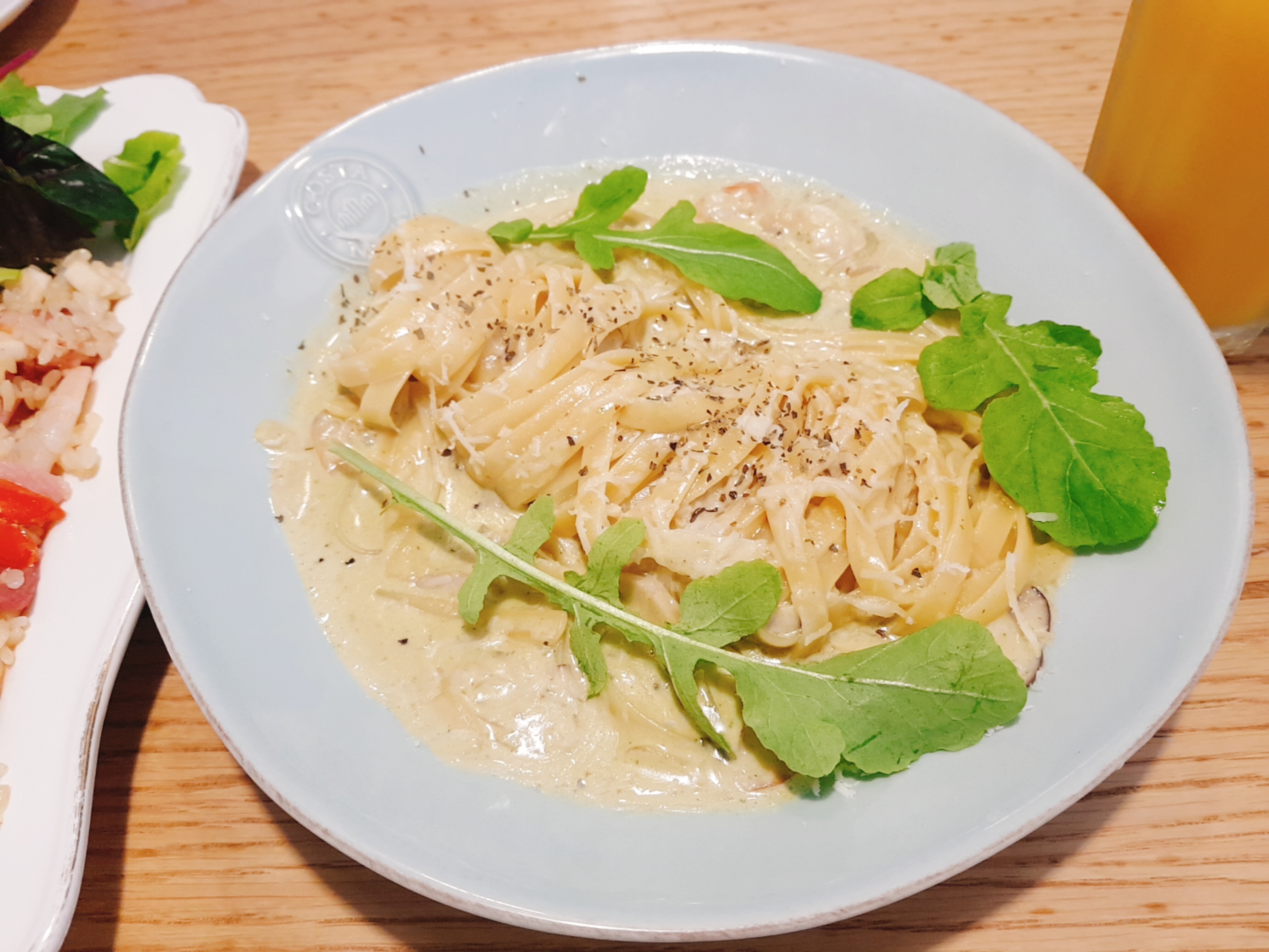바질페스토와 새우 야채 크림등으로 맛을 낸 파스타! 까르보나라와는 또 다른 느낌의 파스타였다. 맛이 조금 달라서 그런가. 소스가 굉장히 맛있었고 개인적으로 면이 조금만 더 얇았으면 최고였을듯. 면이 조금 두꺼운게 아쉽다. 소스가 맛있다보니 소스를 흡입해버려 면 3분의 1정도는 소스없이 먹은듯..
