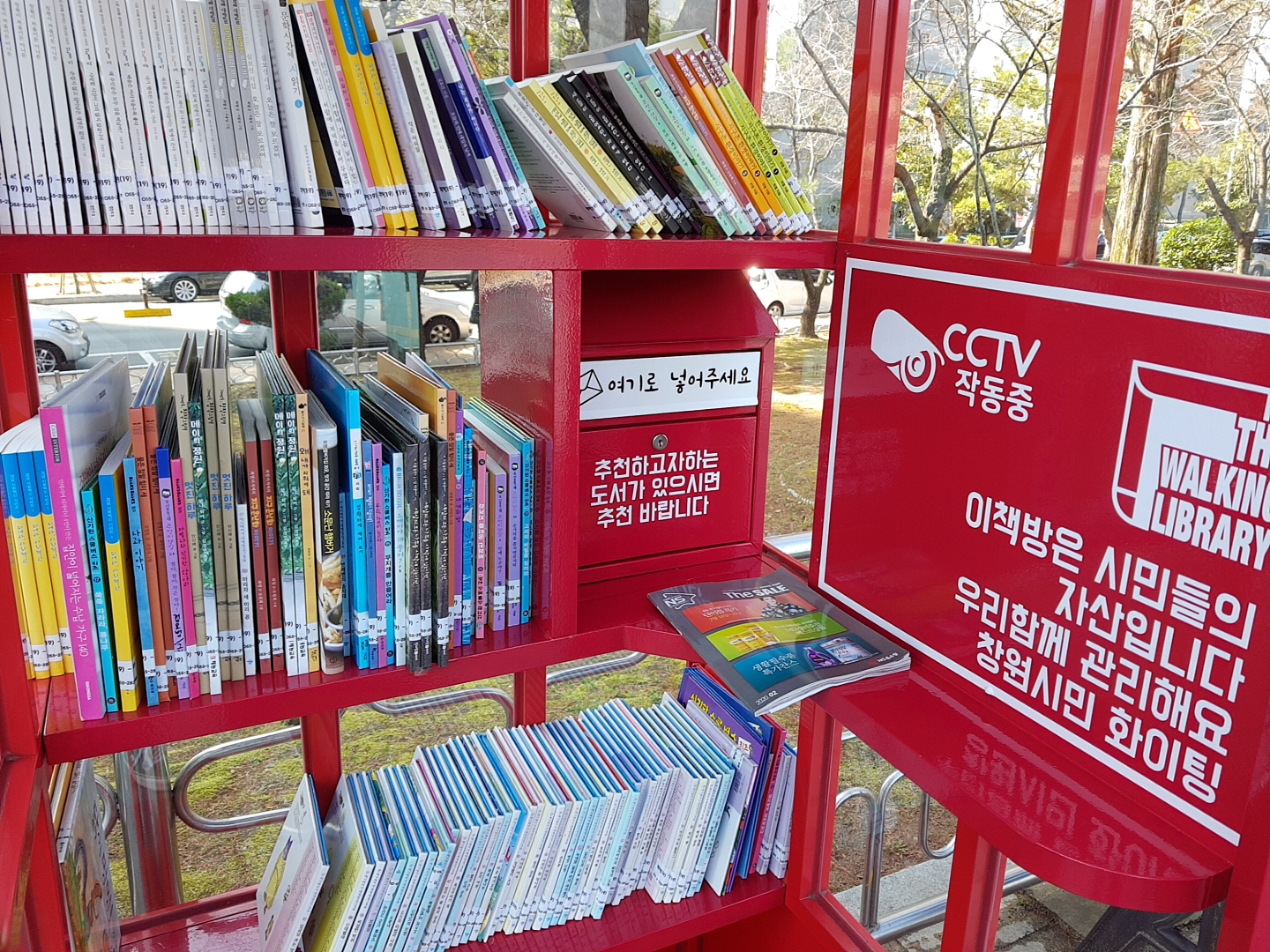 정말 괜찮은 아이디어 같았던 걸어다니는 도서관. 주변에 있는 벤치에 앉아 책 읽기에 좋다. 아이들을 위한 책이 많은거 같았는데 가족끼리 산책와서 아이들 책도 읽고 용지공원 근처에 살면 좋겠다.