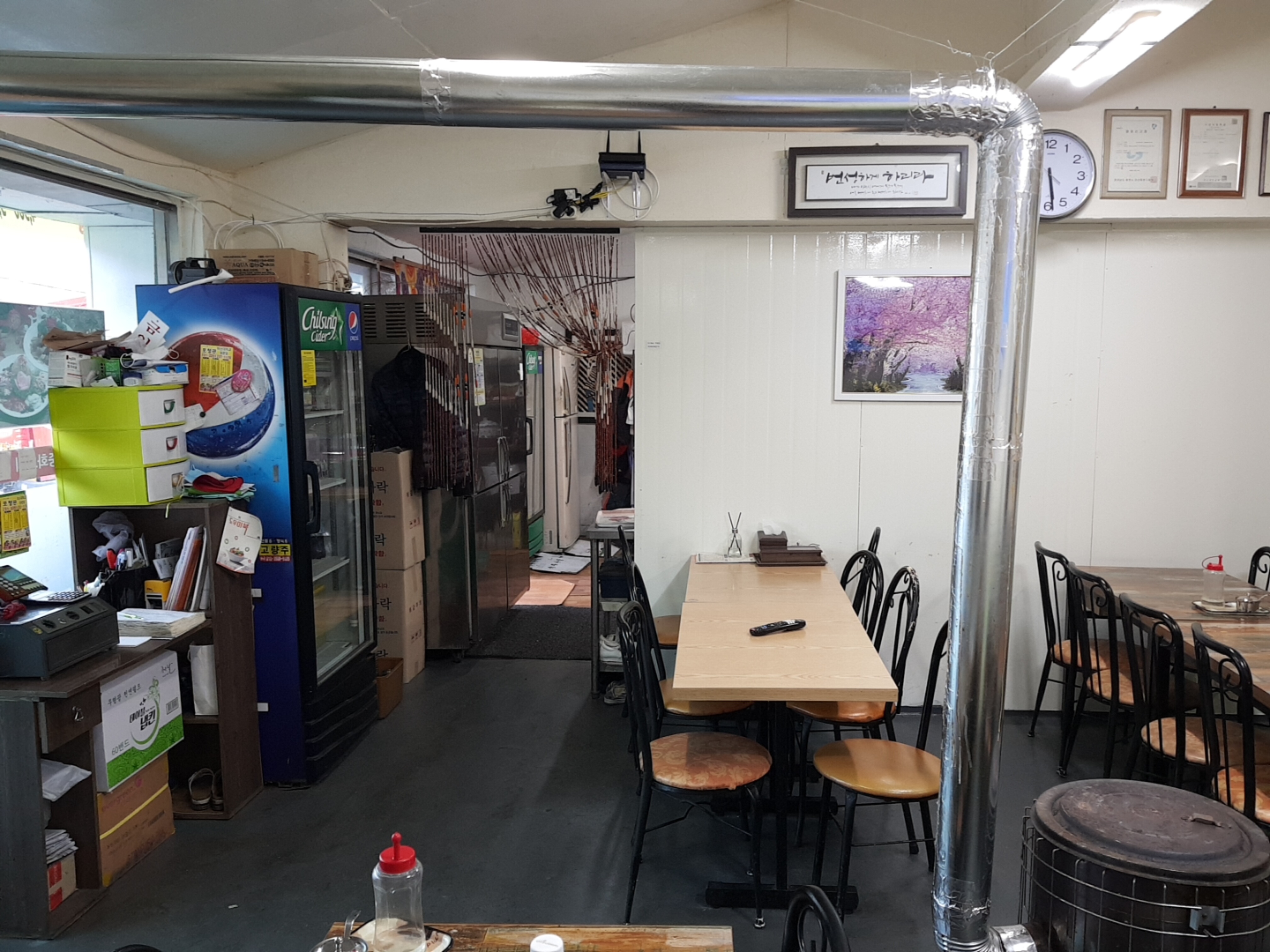 세월의 흔적이 느껴지는 식당 내부! 화로 덕분인지 쌀쌀해지는 밖과는 달리 훈훈한 온기가 돈다.