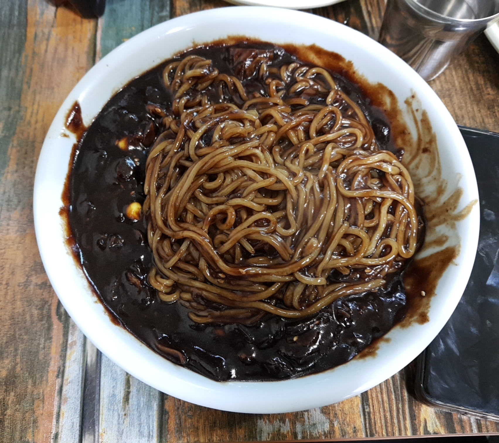 투박해보이는 자장면. 완두콩 대신 옥수수 콘이 올라가있다. 특별해보이진 않지만 자전거를 타서 그런지 쭉쭉 들어간다.