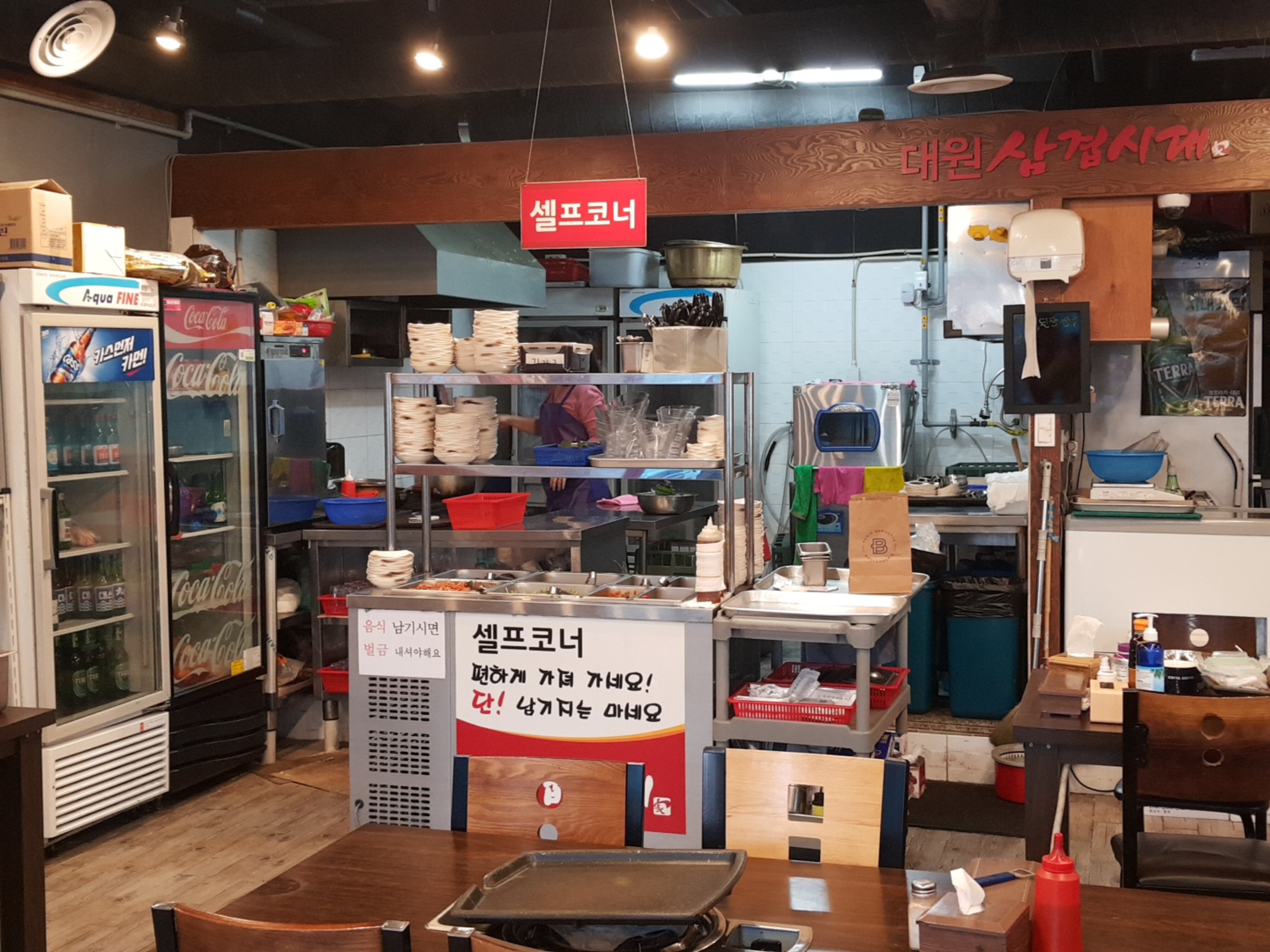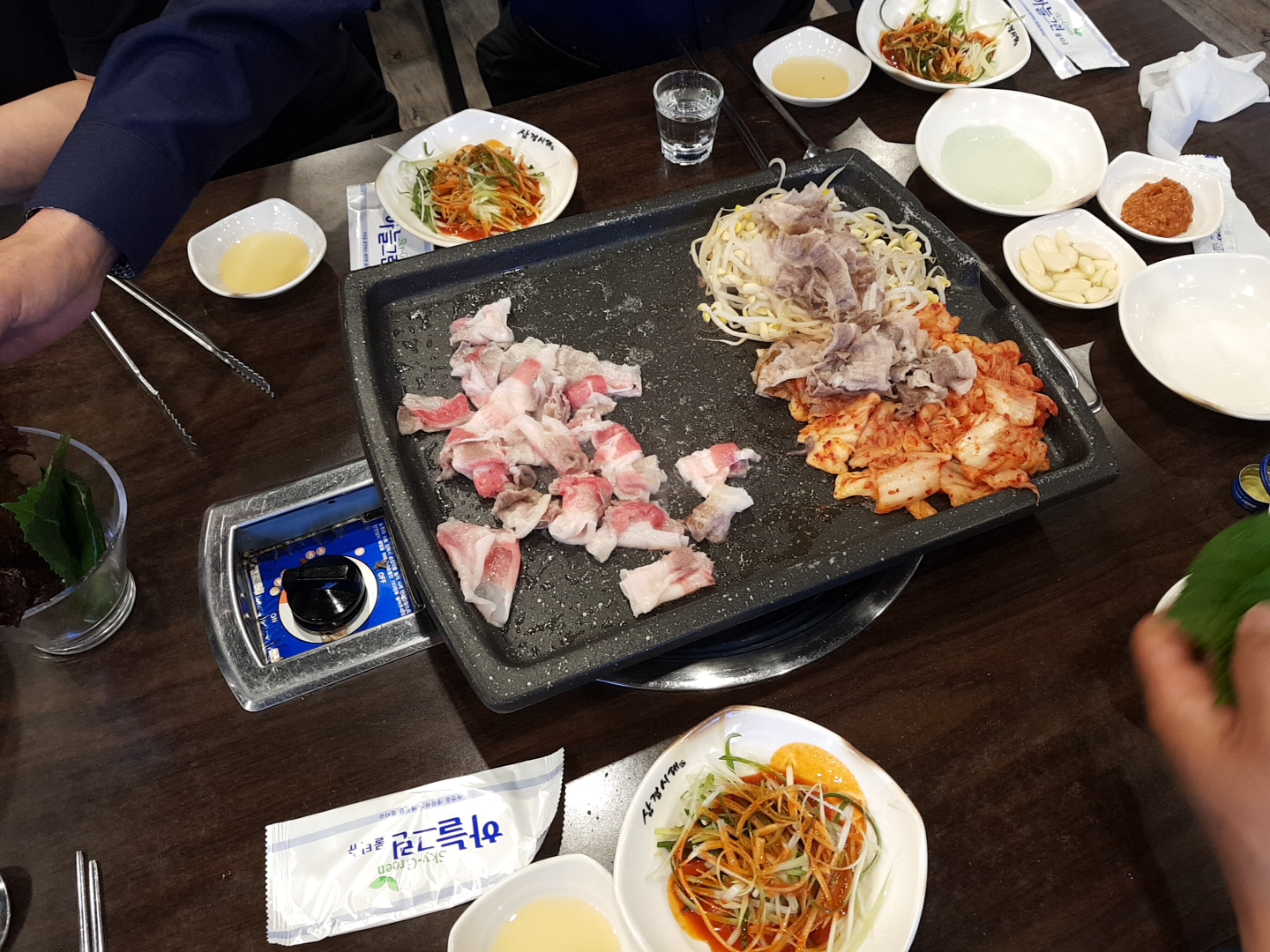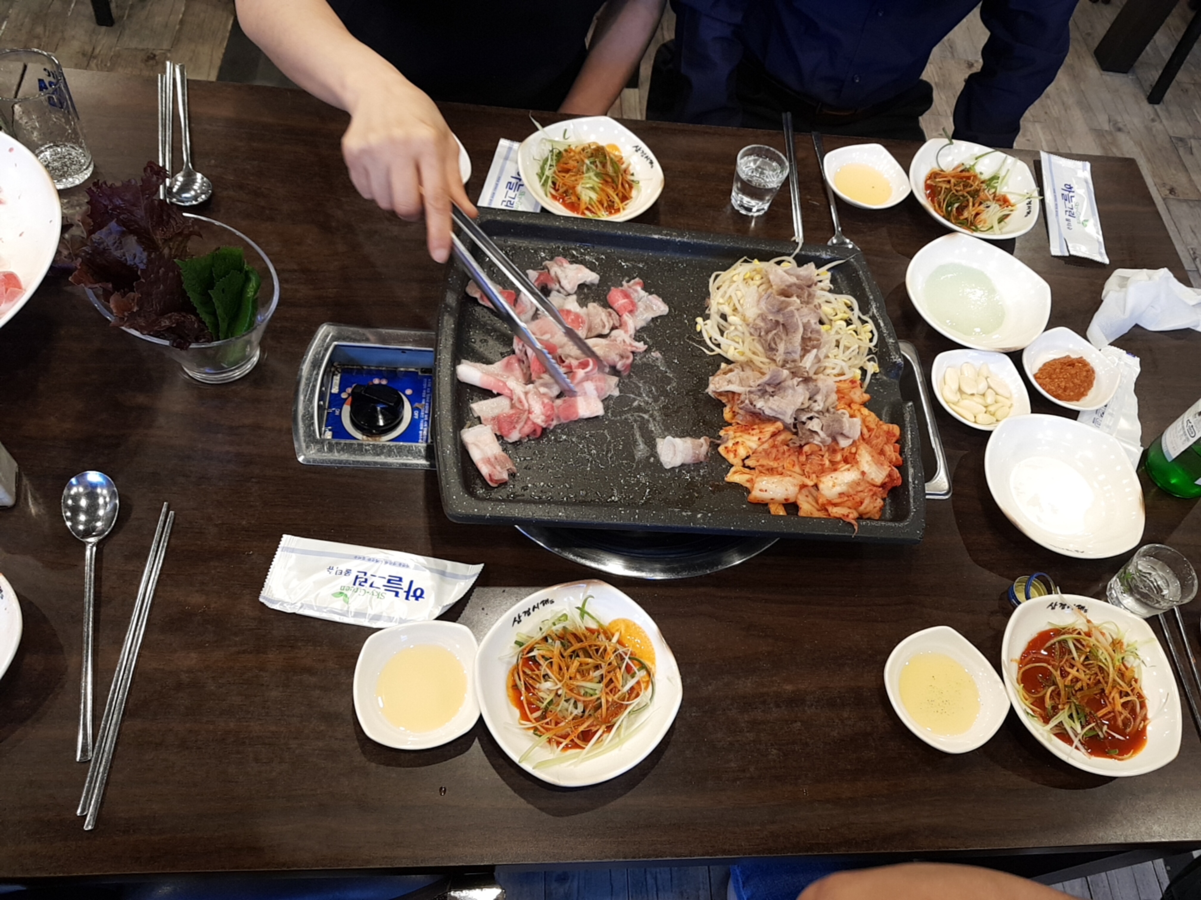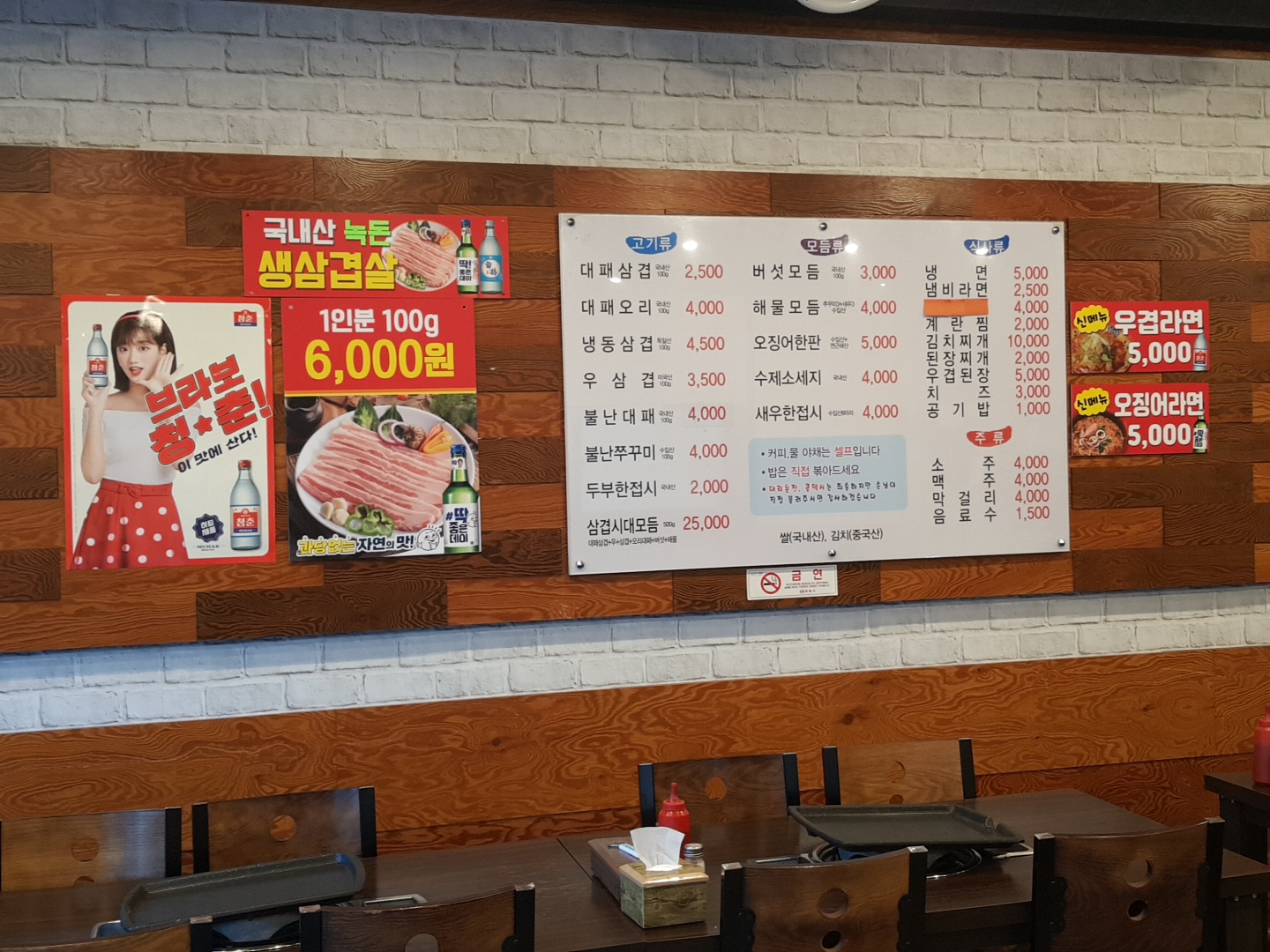 삼겹살도 1인분 100g 6,000원으로 괜찮은 가격이지만 대패 집에 왔으면 대패를 먹어줘야지~ 대패 삼겹 1인분 2,500원이면 먹을 수 있다. 2,200원에서 올랐나보다. 테이블도 많고 식당도 좁지않았는데 우리가 첫 손님이라고 하신다. 고럼 많이 먹어줘야지!
