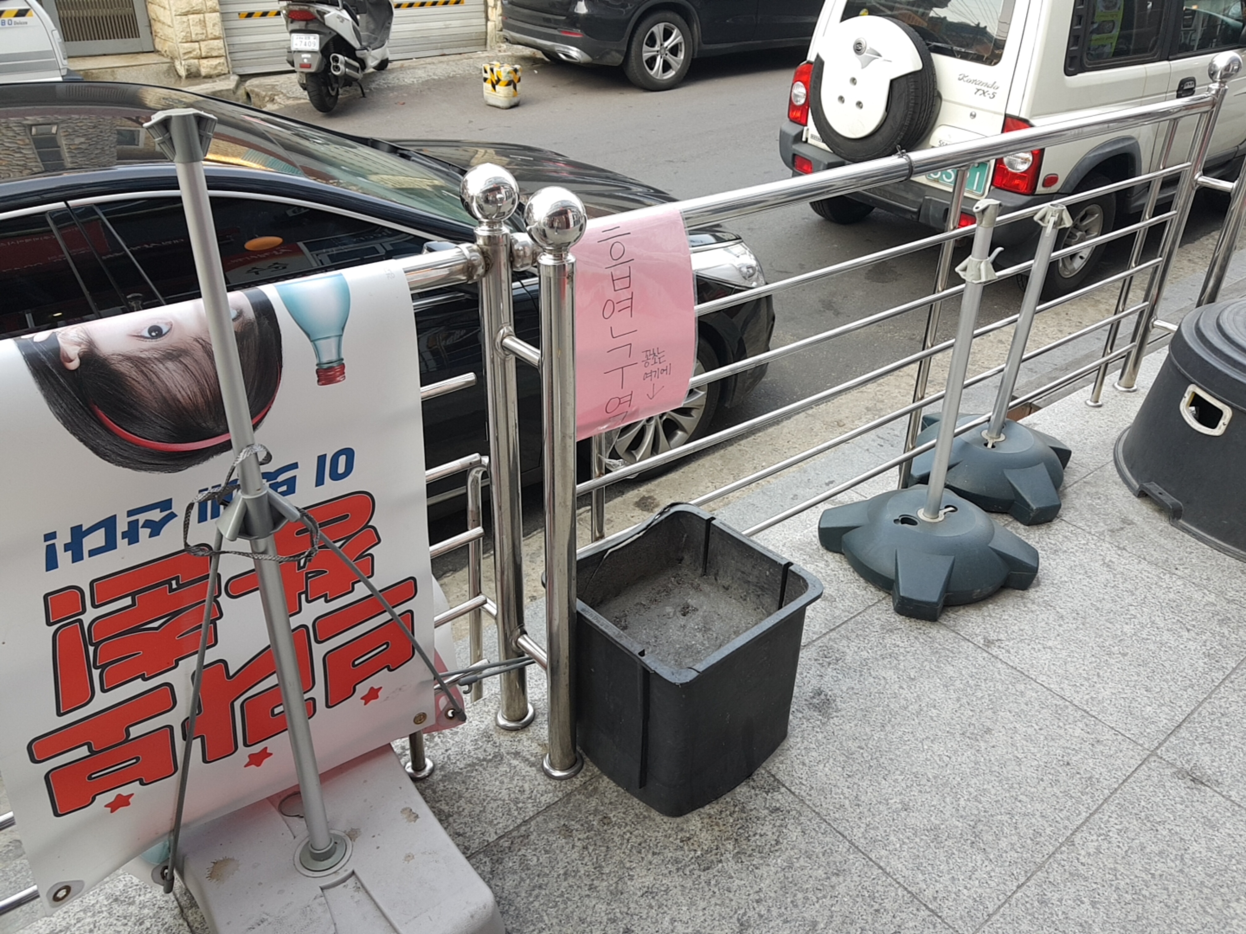 흡연구역은 가게 바로 앞! 코로나때문인지 길거리에도 사람이 없다. 언능 마스크를 안쓰고 외출할 수 있는 날이 오기를