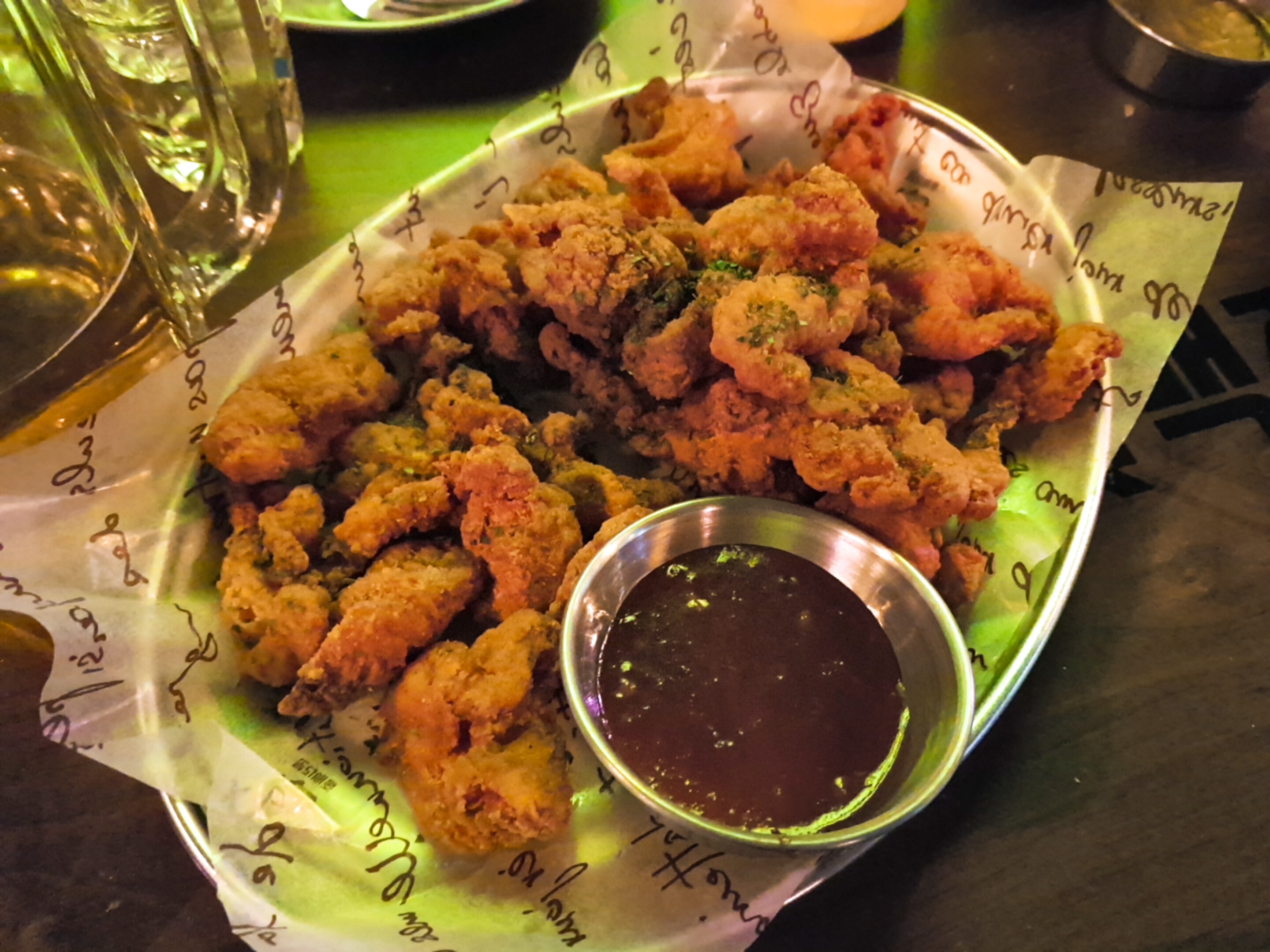 최--애 메뉴로 등극한 닭껍질 튀김! 처음엔 그저 그렇겠지 생각했는데 은근히 씹는 맛도있고 소스랑 잘 어울려져서 맛있었다. 이후로도 닭껍질 튀김은 자주 시켜먹었다. 가격도 7,000원으로 저렴!