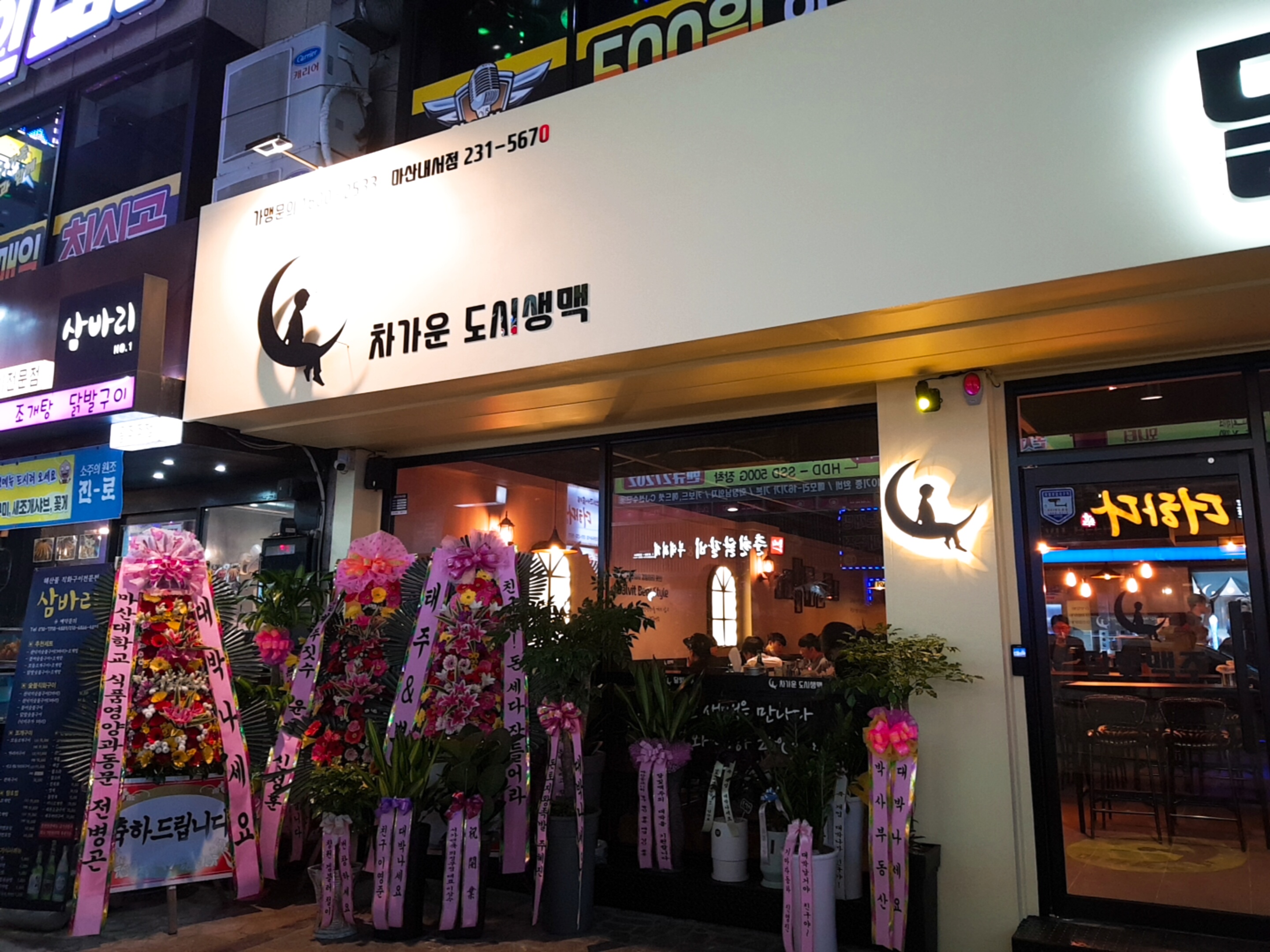 달빛맥주! 오늘 포스팅은 며칠전 다녀온 새로오픈한 달빛맥주! 원래 화소도 고깃집과 우마이라무가 있던 자리인데 두개를 합쳐서 도시 생맥집이 오픈했다. 사실 오픈하기전부터 기대만발~~ 오픈하면 언능 다녀와야지 싶었는데 마침 개업! 화환 갯수도 장난아니다. : )