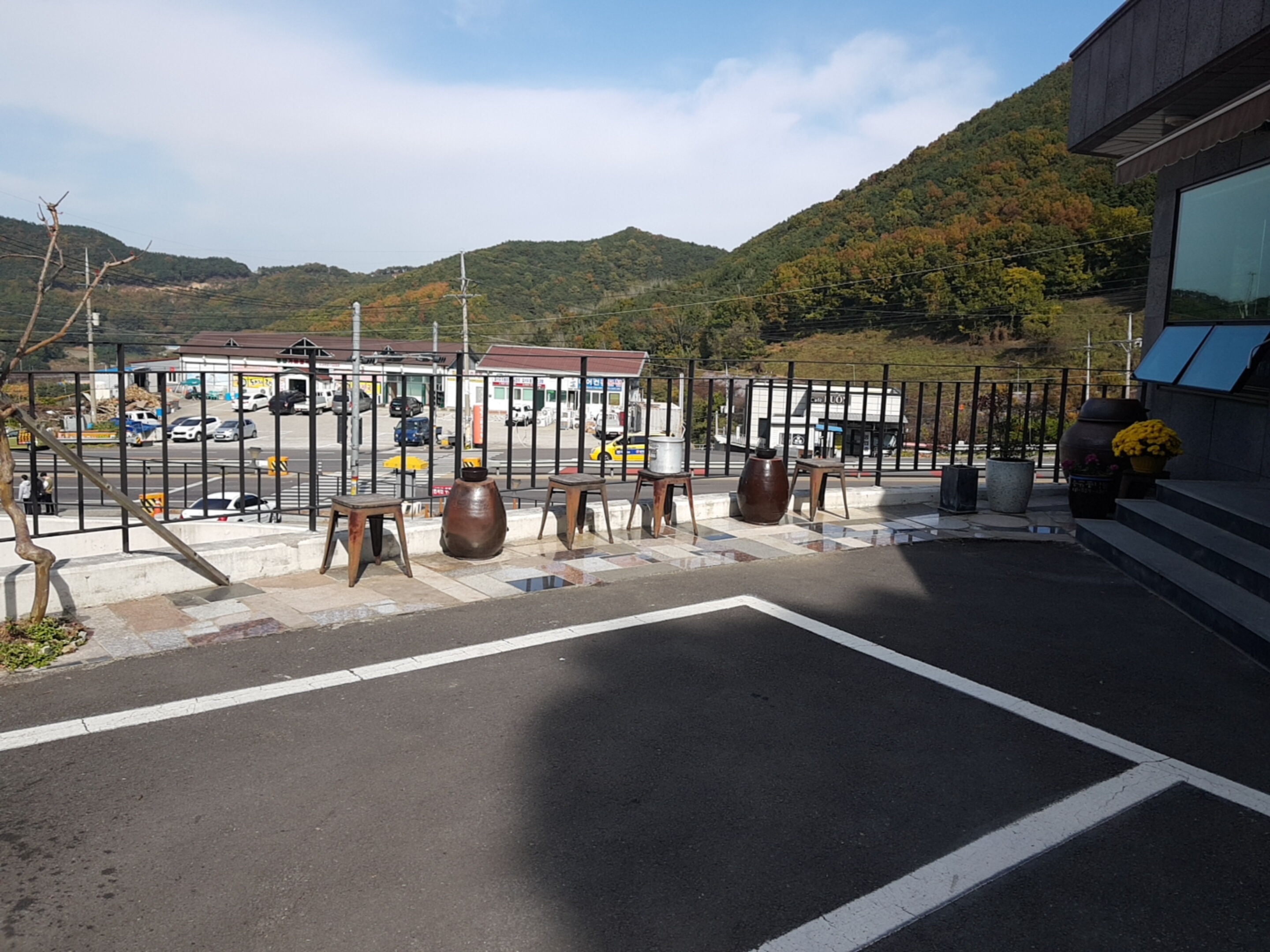 곧 겨울이 올듯한 날씨지만 낮에는 가을의 높은 맑은 하늘을 볼 수 있어 요즘 참 좋다. 곳곳에 단풍들도 보이고! 이곳은 마산 대학 뒤쪽 함안가는 길로 내려가다보면 위치해있다. 1층 이마트 편의점 옆에난 길로 올라가면 이렇게 6자리정도 있는 주차장이있다.