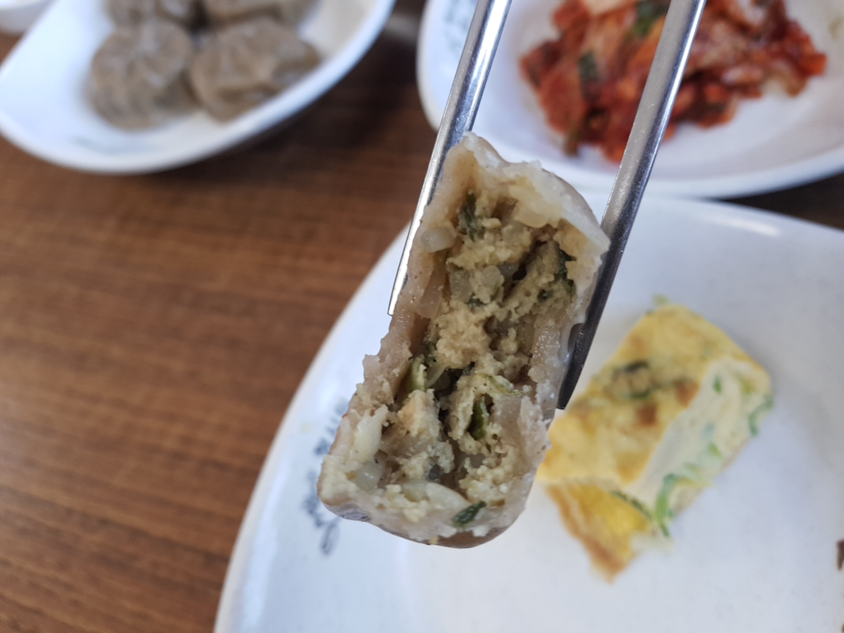 국밥에 넣어서도 먹고 반 먹고 사진도 찍어보고 인당 2개씩 나오는 작은 메밀만두! 메뉴에있는 찐만두는 뭘까? 궁금쓰