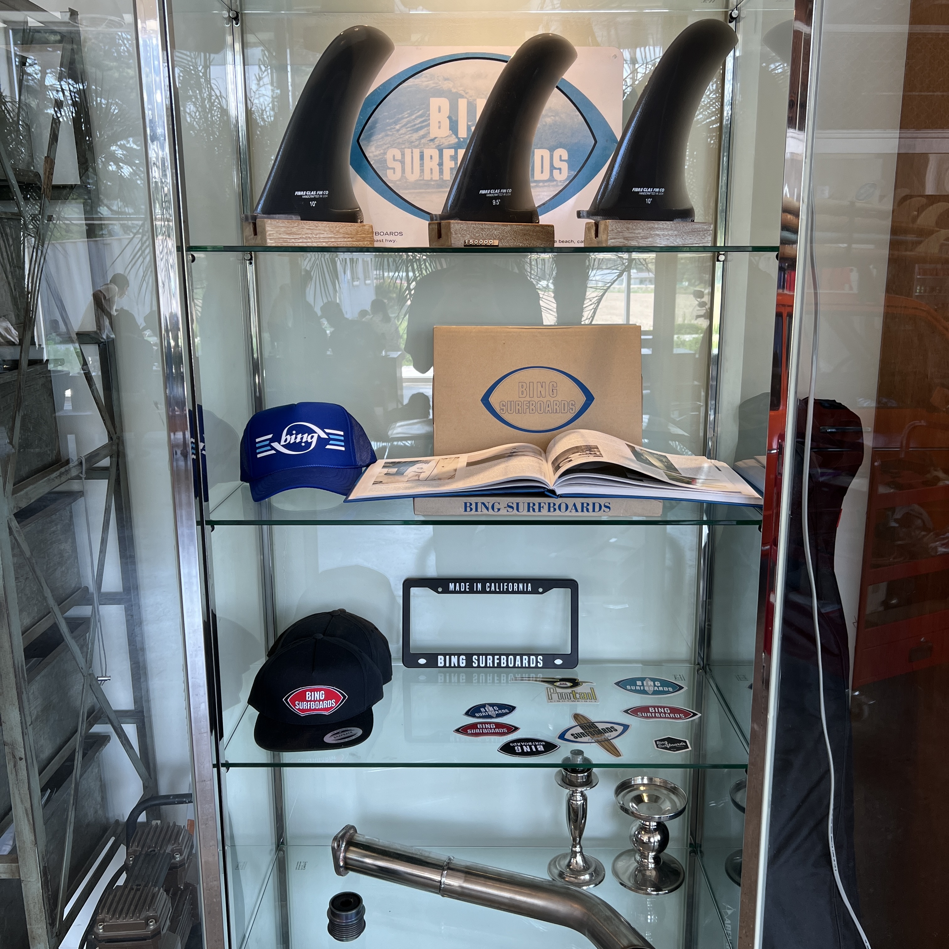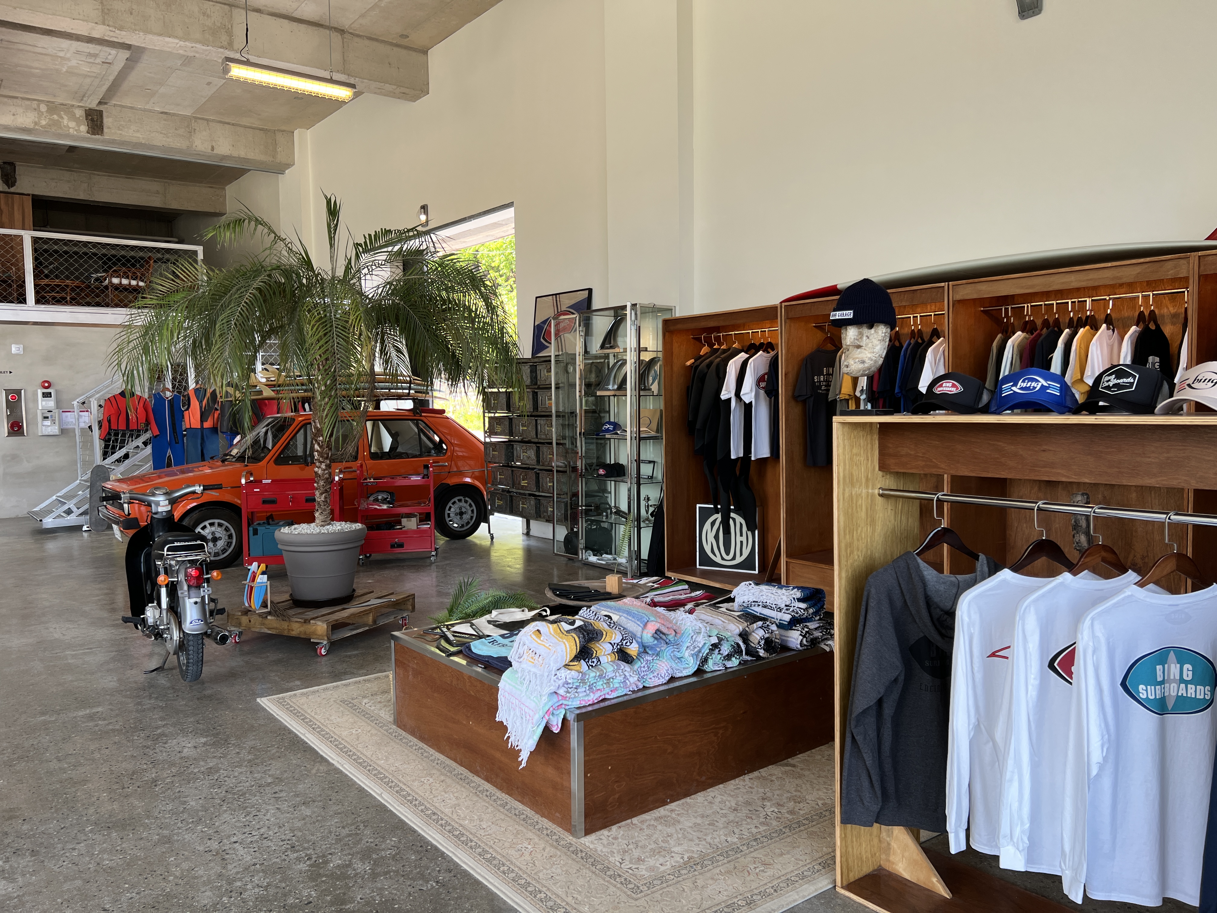 미국 브랜드 서핑보드인 bing surfboard 빙 서프보드도 전시돼있고 빙브랜드 굿즈 티셔츠와 핀 등등 서퍼들도 구경하러 많이 오는 곳!