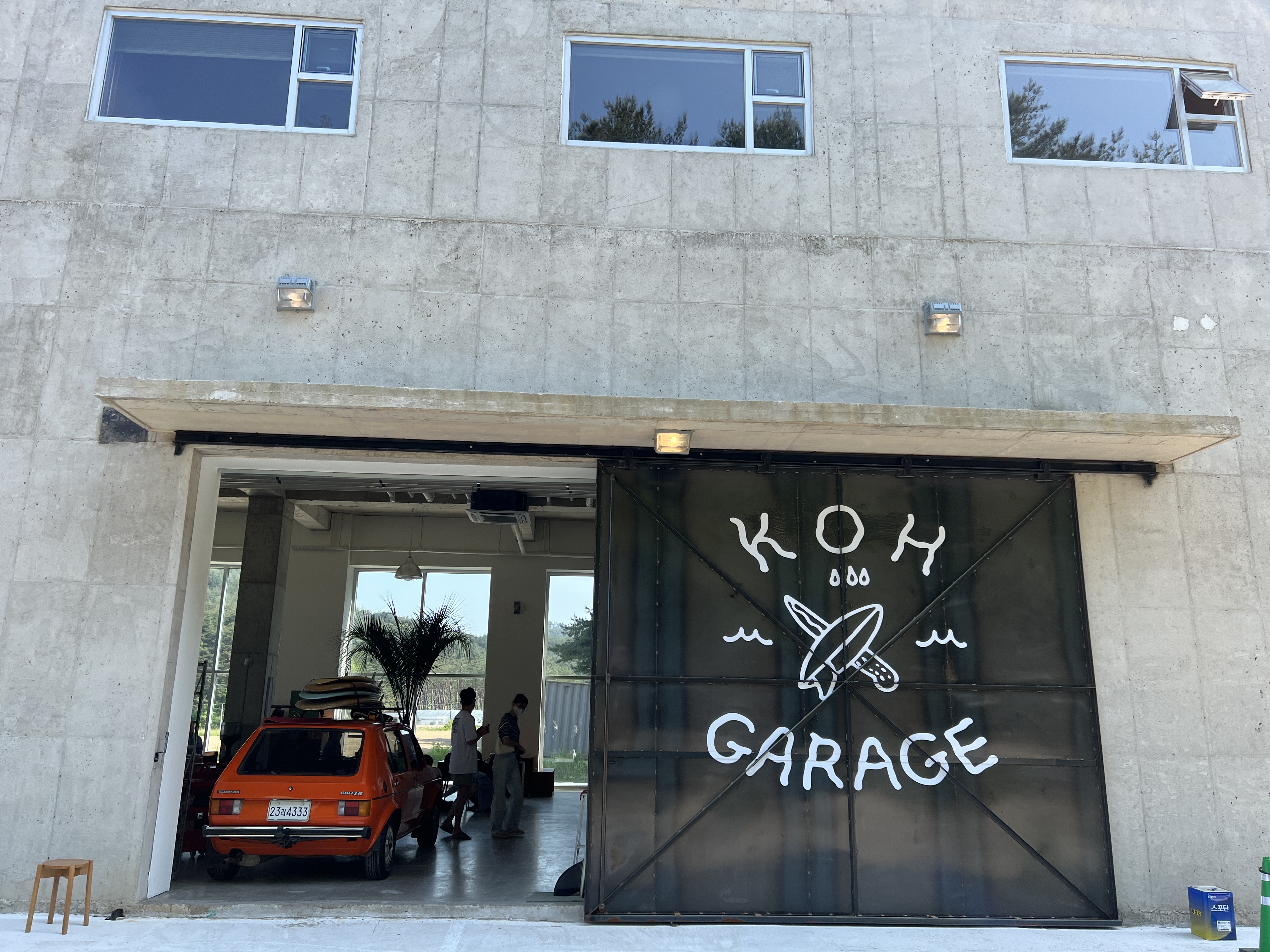 든든하고 식사를 끝내고 온 koh garage 코게러지! 카페인줄만 알았더니 2층에 서핑샵을 운영한다고 함. 건물 앞 주차장이 있어 편하게 주차하고 건물 옆쪽 포토스팟으로 고고