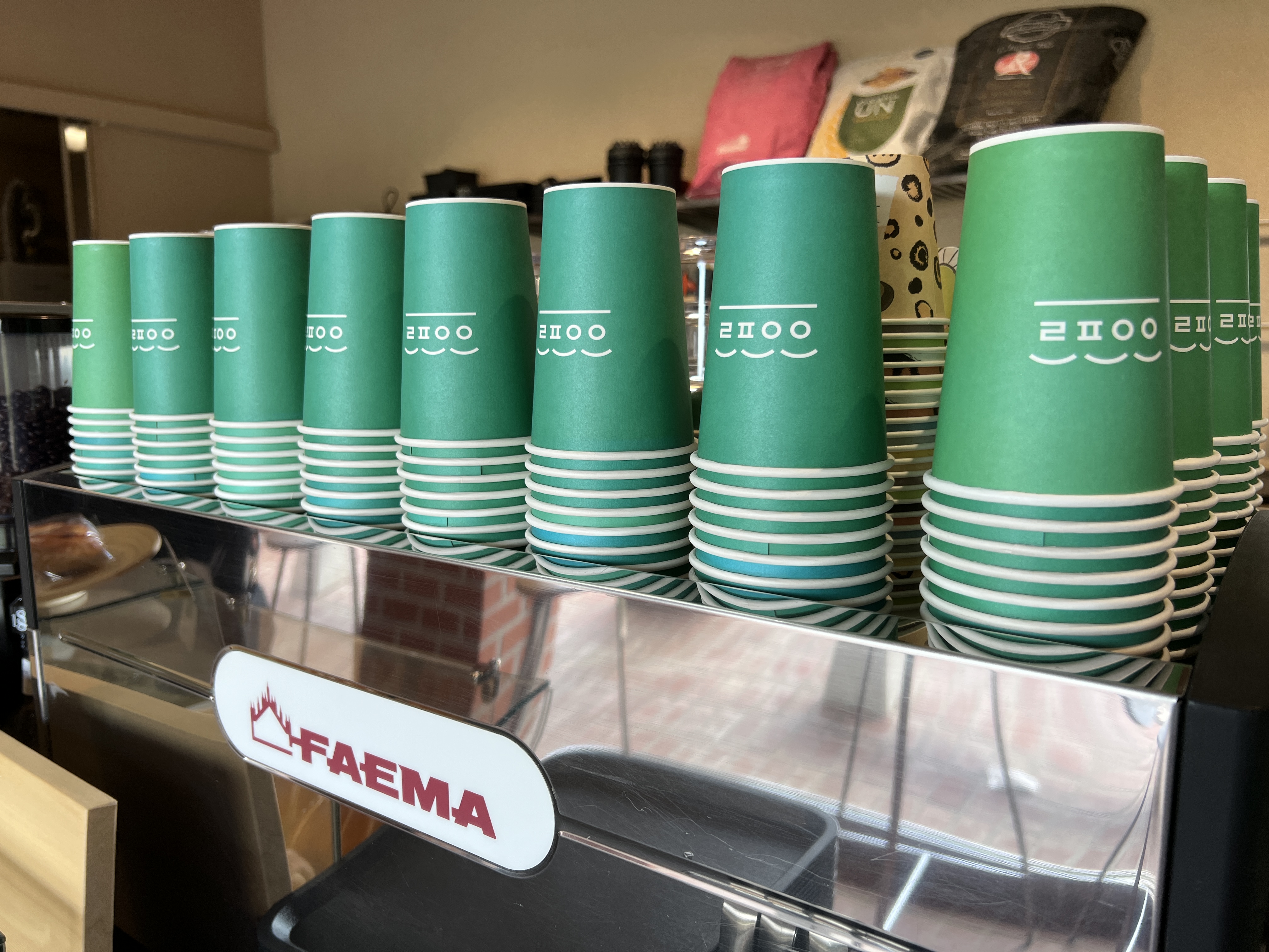 초록 테이크아웃 잔이 눈에 들어왔다.