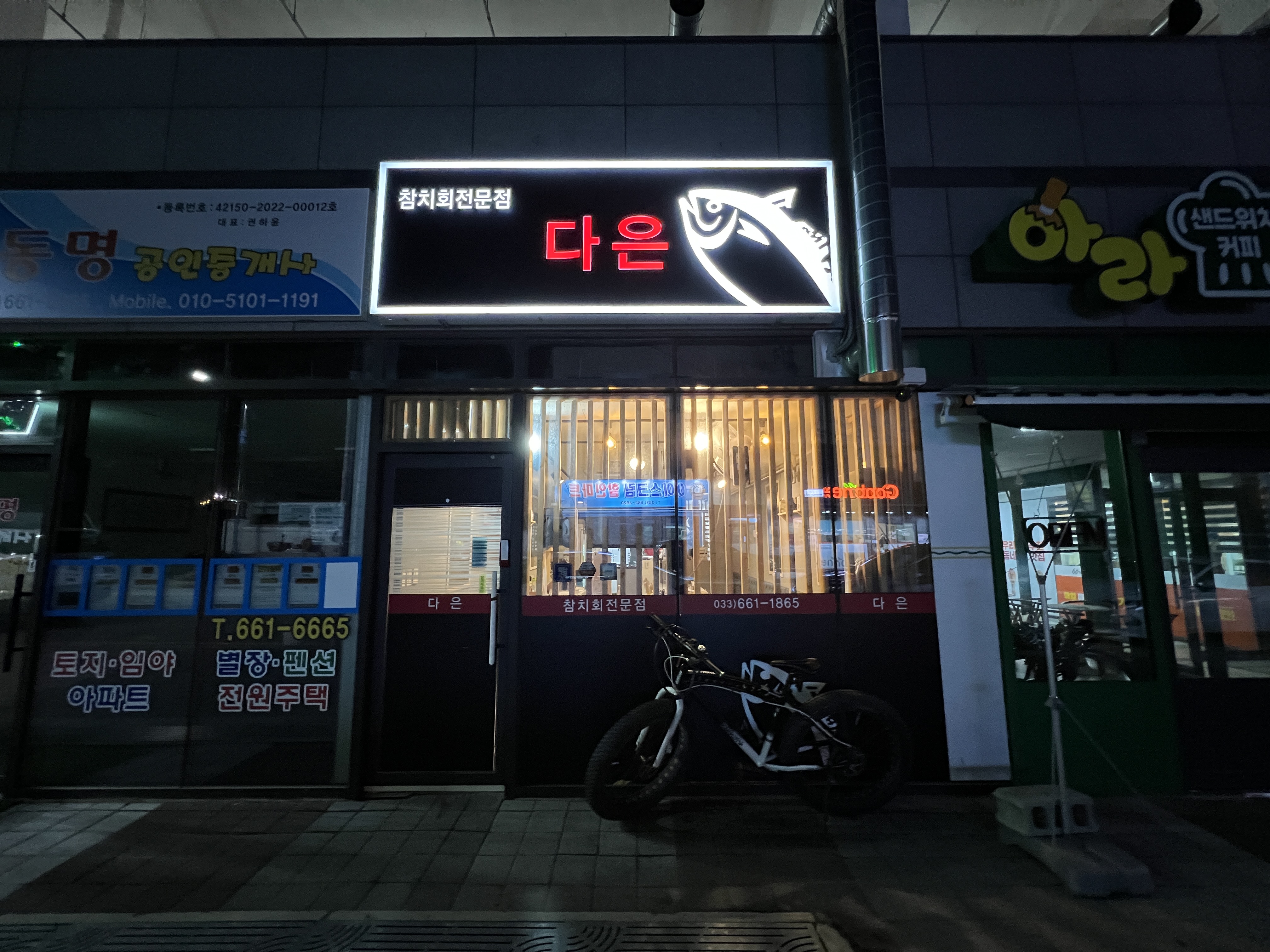 오늘은 오랜만에 일이 일찍 끝나 뭘 먹을지 고민하던 차에 오랜만에 참치회나 먹자라는 말에 부리나케 달려온 주문진! 작년엔 회식하러 자주 왔던 곳인 '다은' 참치회 전문점