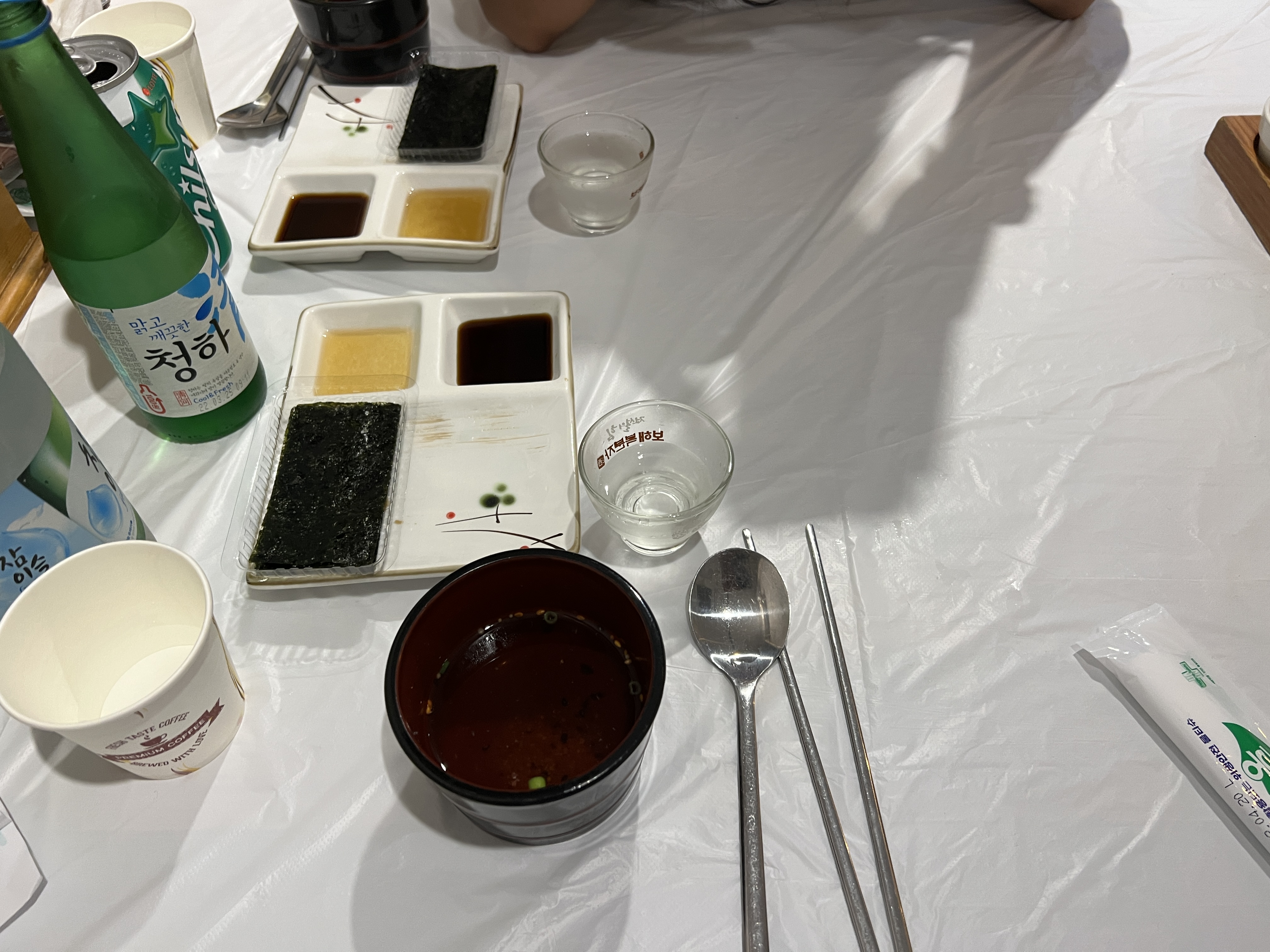 첫번째 접시를 후다닥 끝낸후 배좀 채웠기때문에 두번째 접시부터는 천천히 청하 + 사이다로 목을 축여가며 먹었다. 후,,