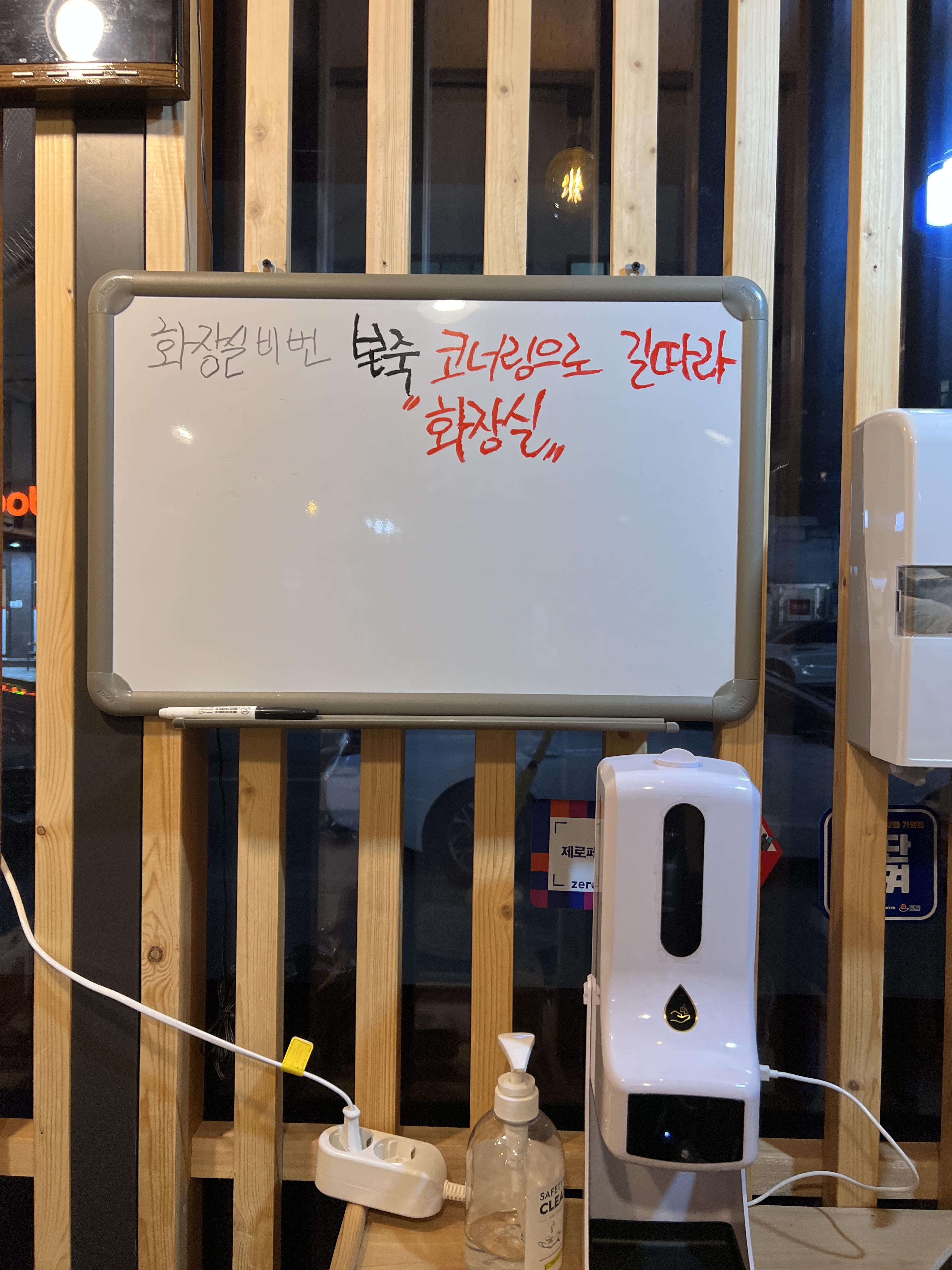 깔끔하게 정돈된 실내, 테이블은 4-5개정도지만 간격이 좁지않고 널널하다. 화장실 비밀번호는 사장님께 여쭤보자,,