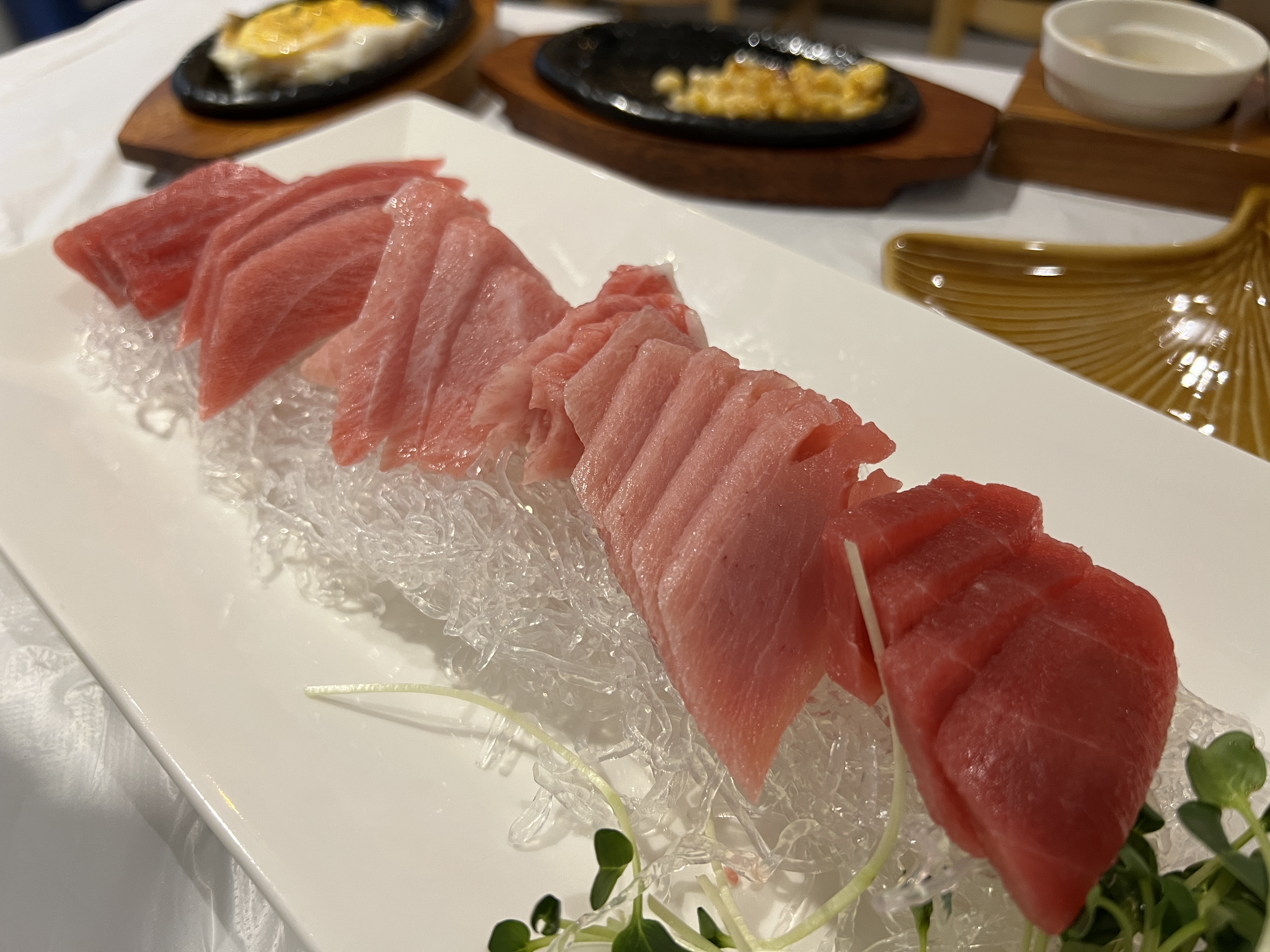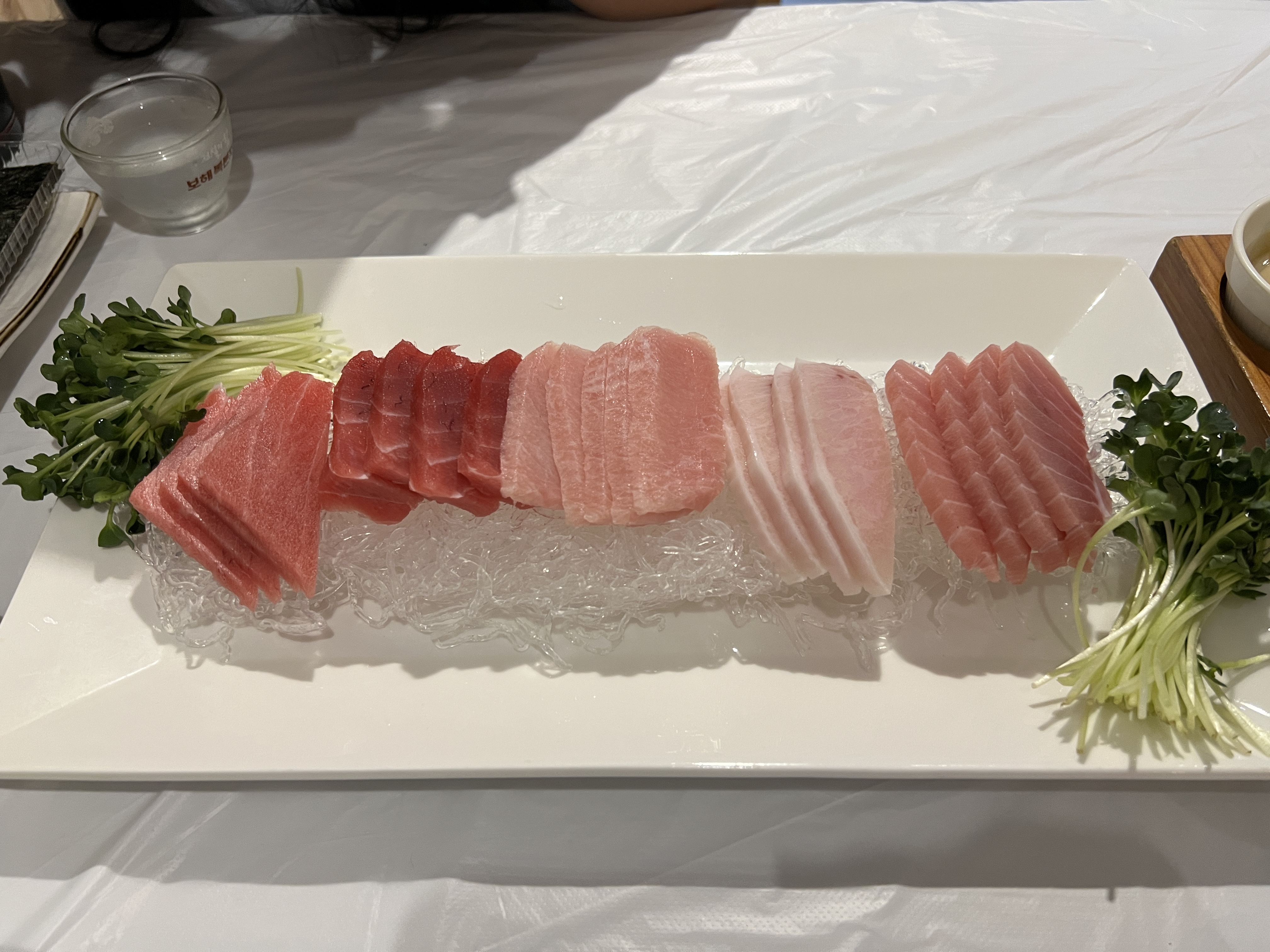 2인 리필 참치회의 첫번째 접시가 나왔다. 참치회를 많이 먹어보지않아서 부위멸 명칭은 모르겠으나 하얀 기름많은 부위는 딱 내 취향 *