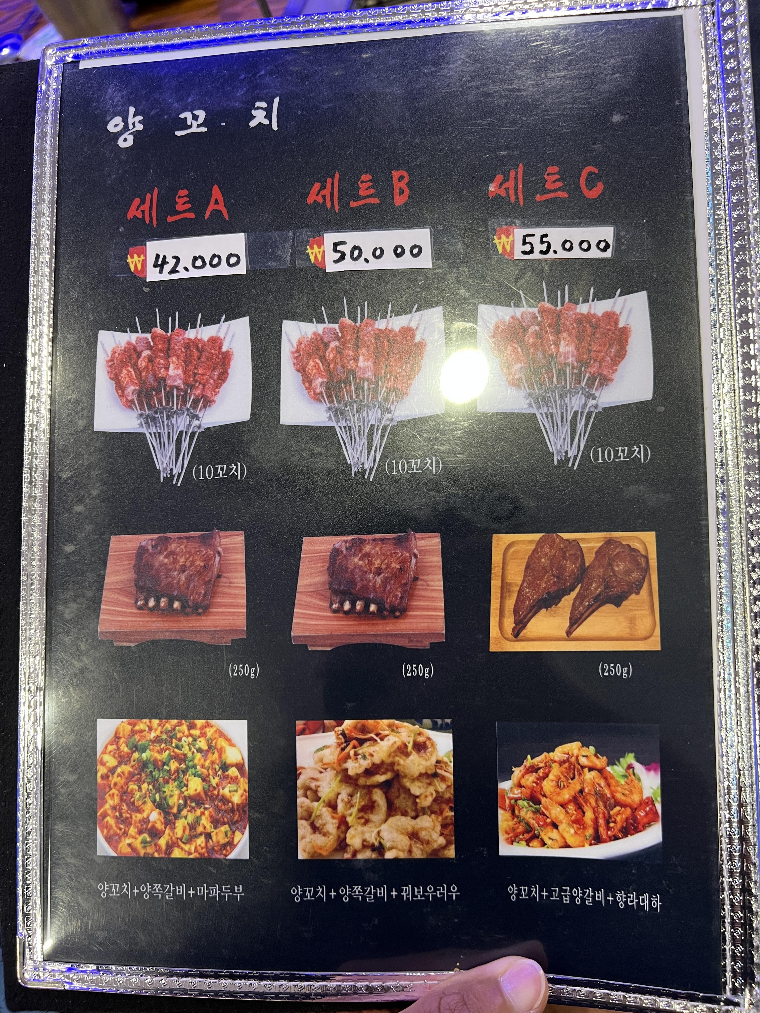 세트C (양꼬치 10개 + 고급양갈비 1인분 + 향랴대하)+