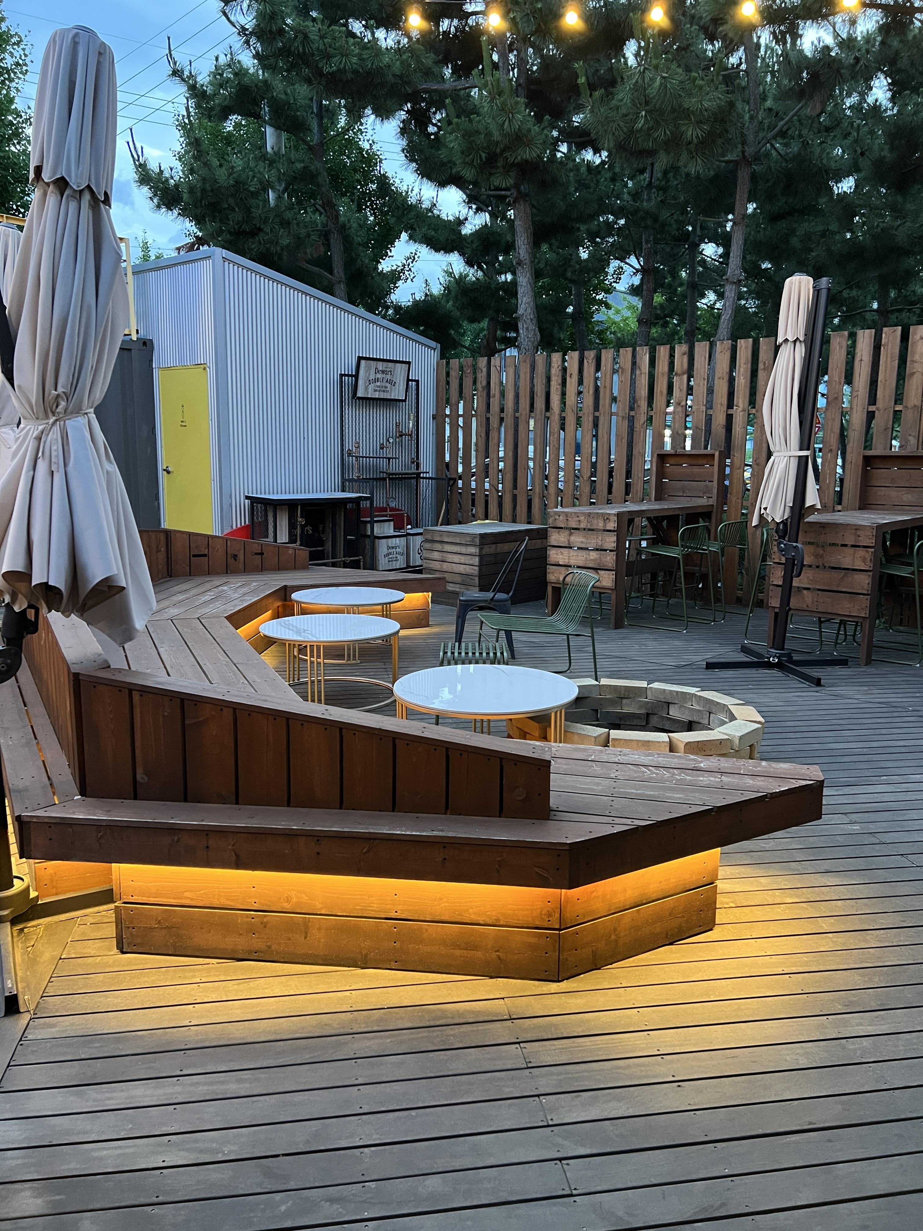 야외에서도 피맥을 즐길 수 있게 테이블이 있었는데