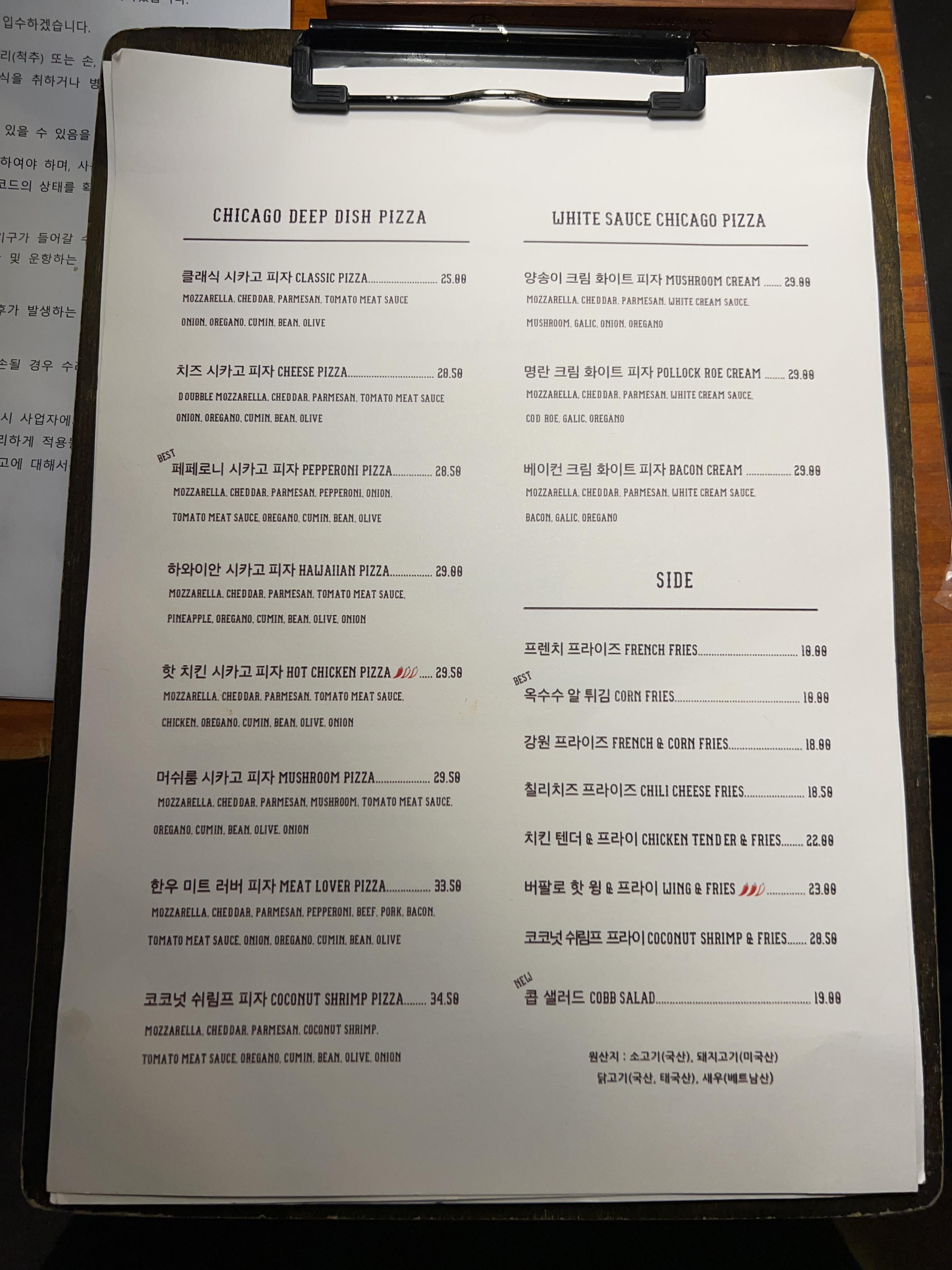 베스트 메뉴인 페퍼로니 시카고 피자 28,5