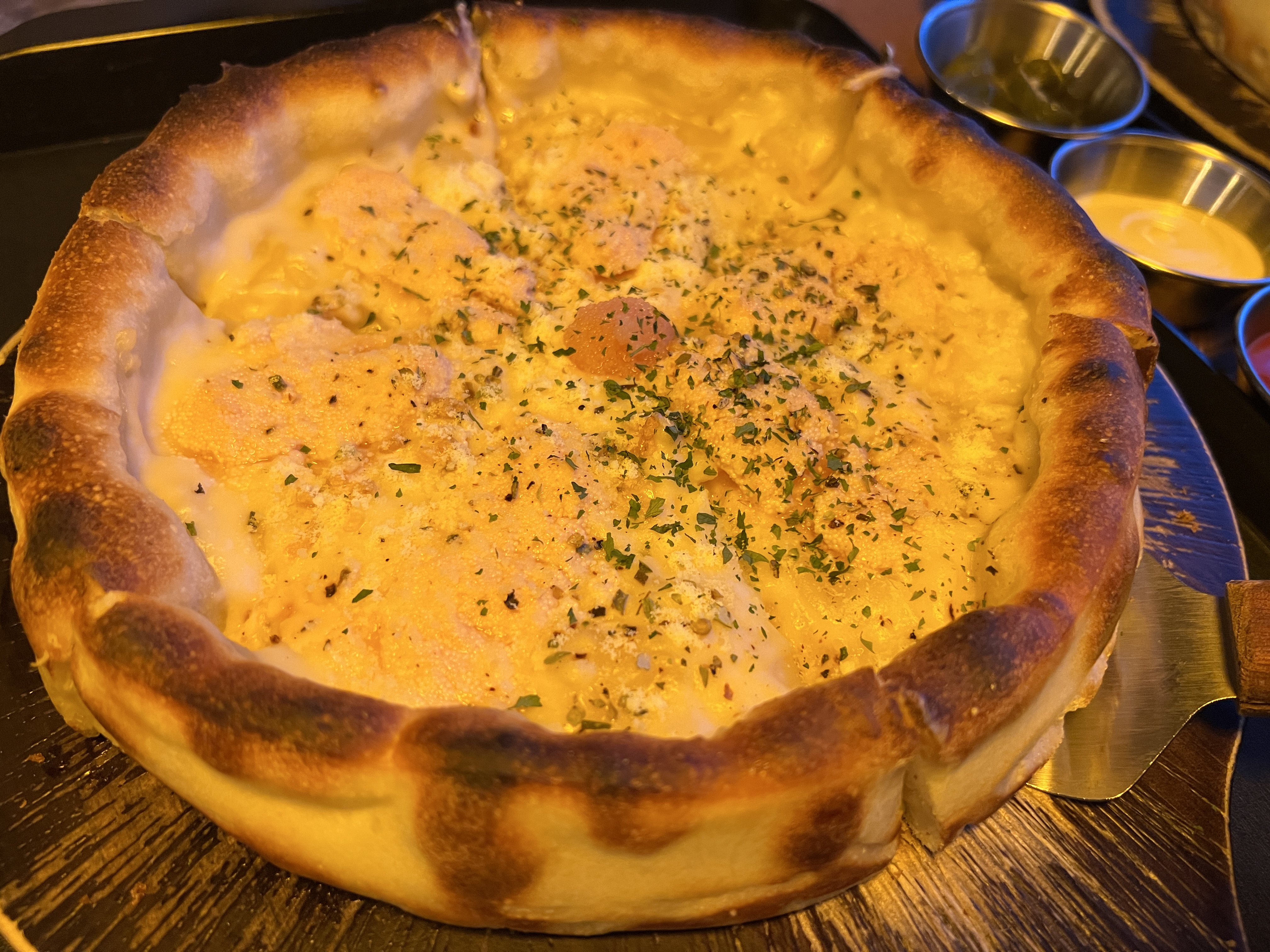 시카고 피자랑 명란과 크림이 듬뿍 들어간 피자,