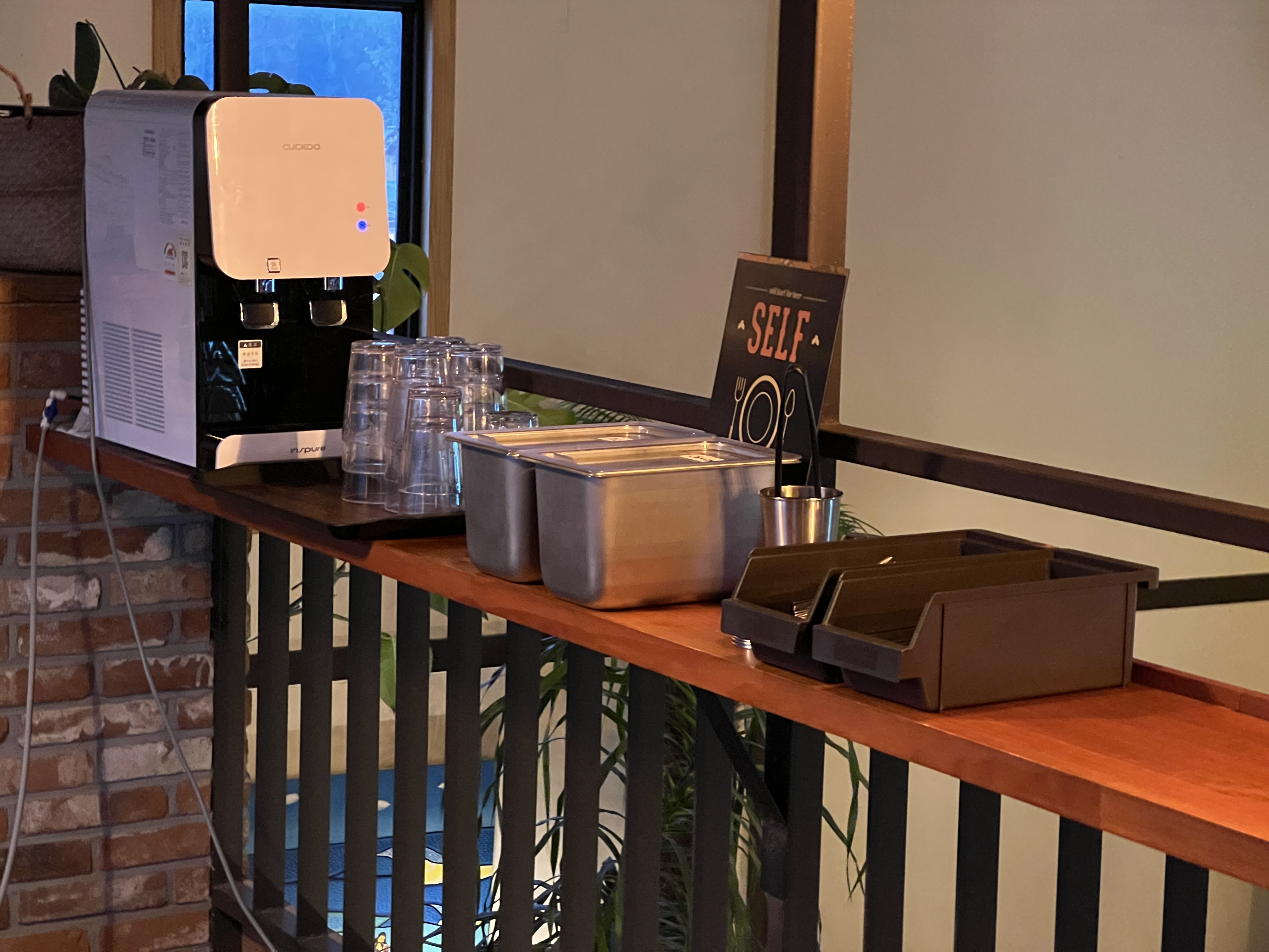 1층 출입구쪽과 2층에 셀프바(소스, 피클 수저)가 있어