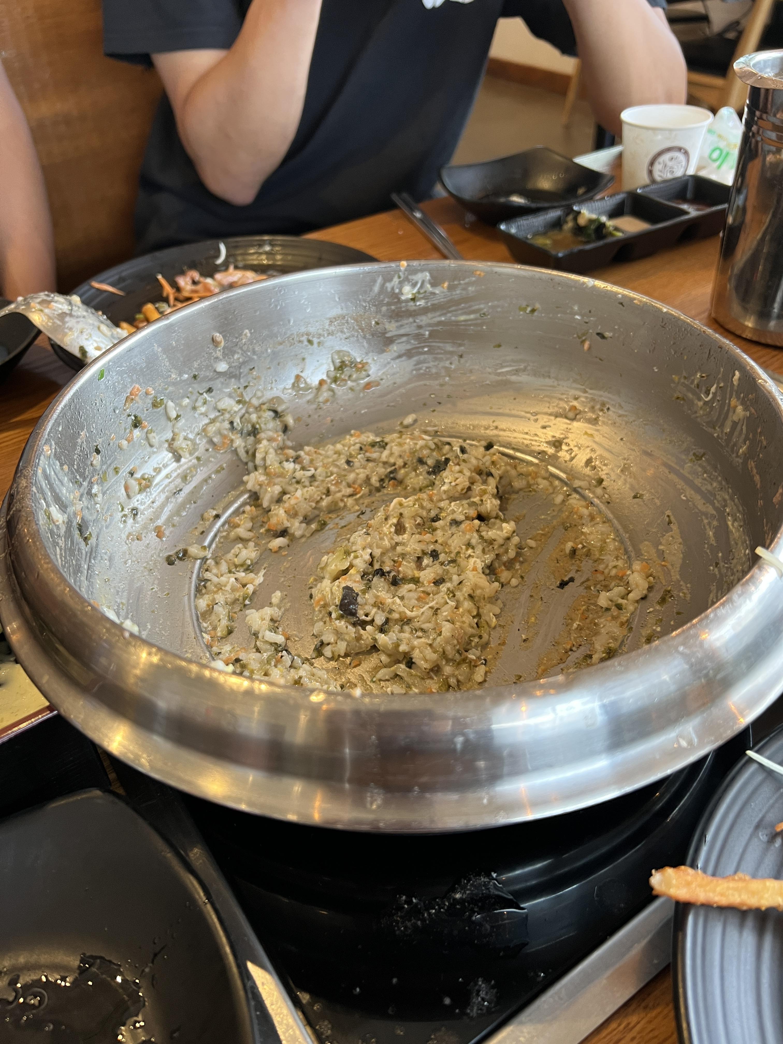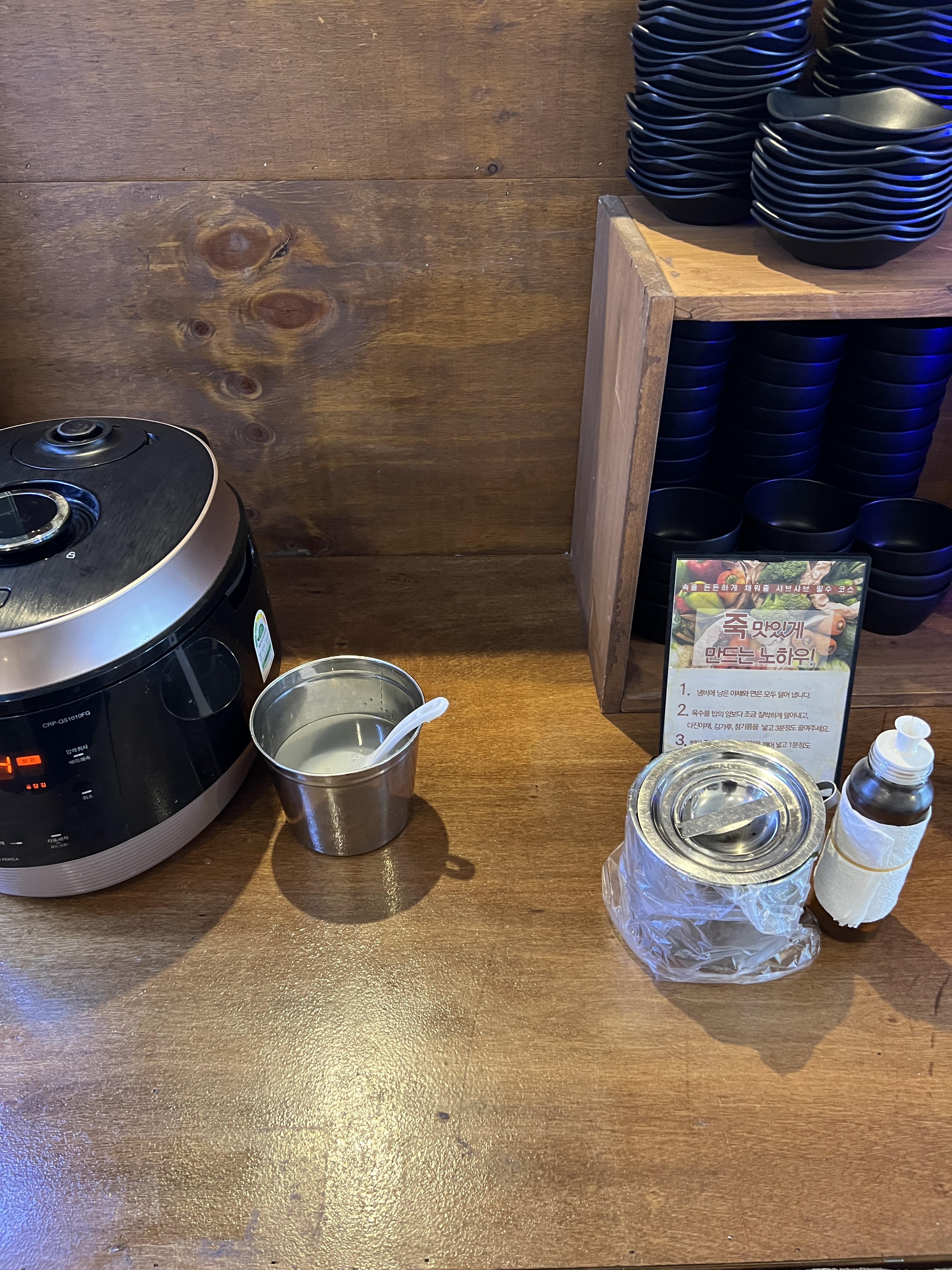 먹다 남은 죽이라 비주얼은 좀 그래도 진한 소고기 육수 + 채소 + 김가루 + 참기름 + 계란 까지 다 들어가있다는