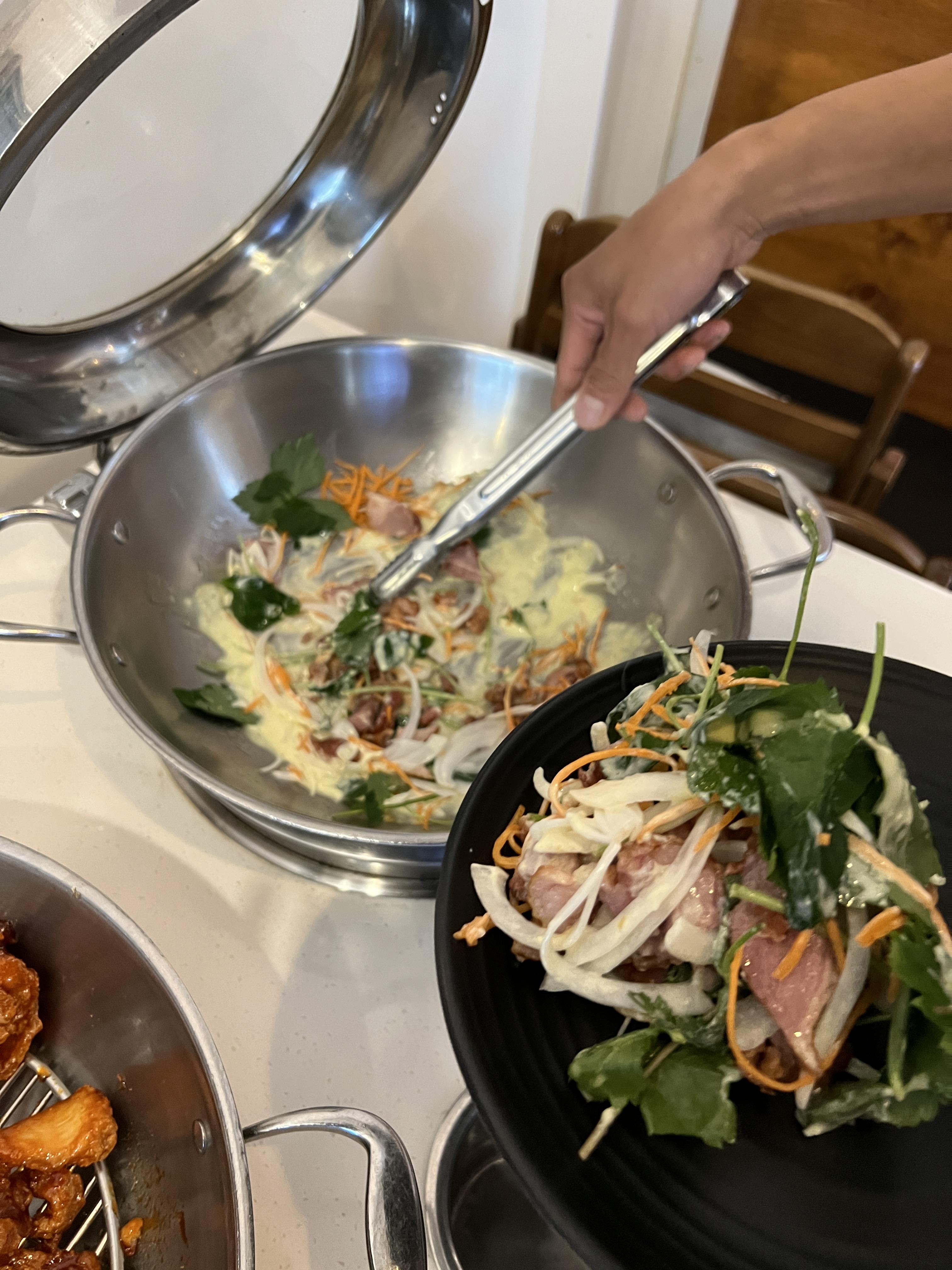 오리훈제와 사진엔 없지만 양념치킨을 담고 (소고기먹어야하는디 너무 많이담으면 안됨....) 샤브샤브먹으러 ~