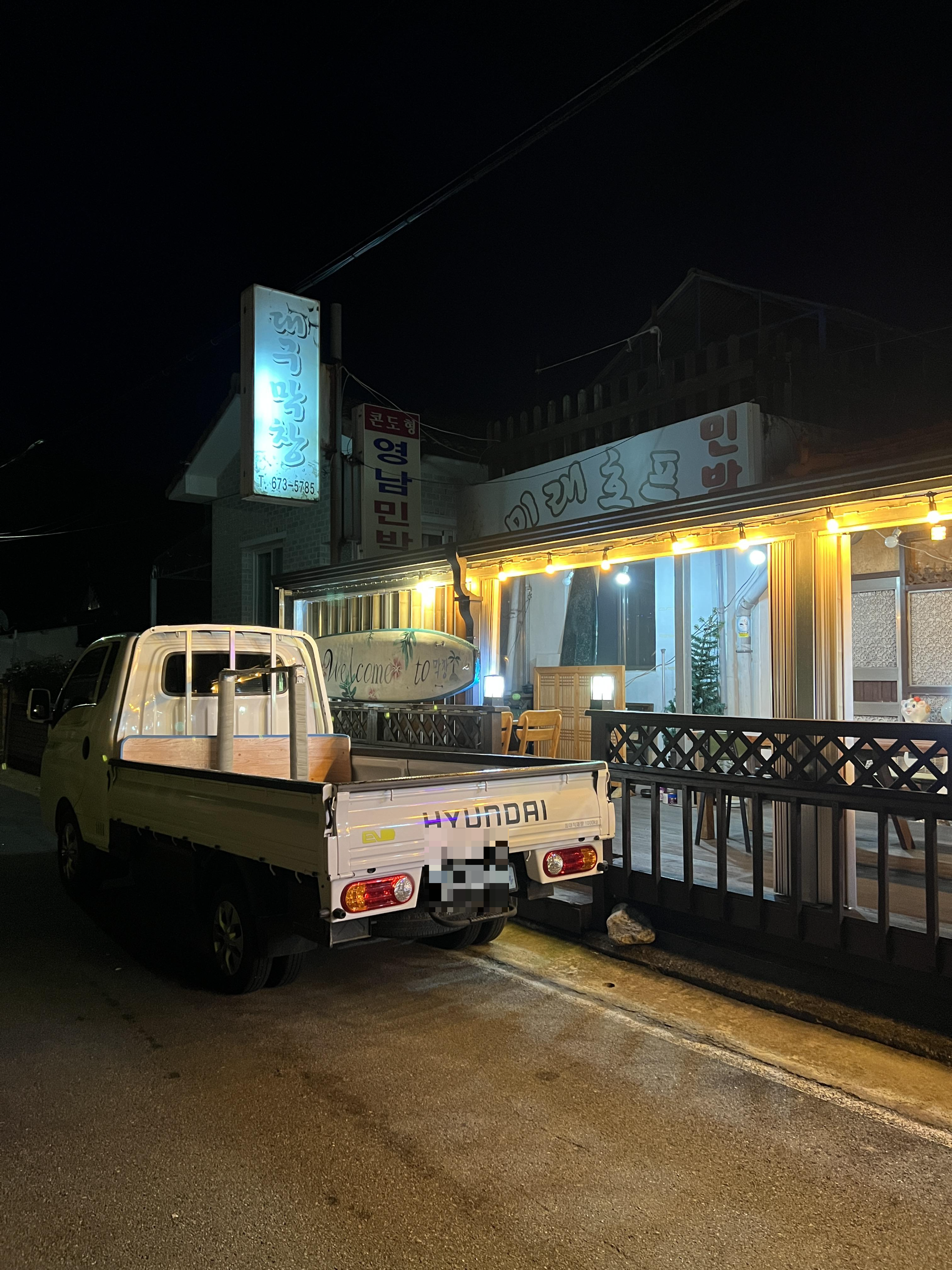 주차자리는 따로 없어서 큰 길가에 주차하거나 대구막창 앞에 주차를 해야하는데 하조대 입구부터 차가 많아 주차자리를 찾지못하고 대구막창쪽 골목으로 들어와버렸는데 타이밍 좋게 한대가 빠져서 얼른 주차하고 밥먹으러 꼬우!
