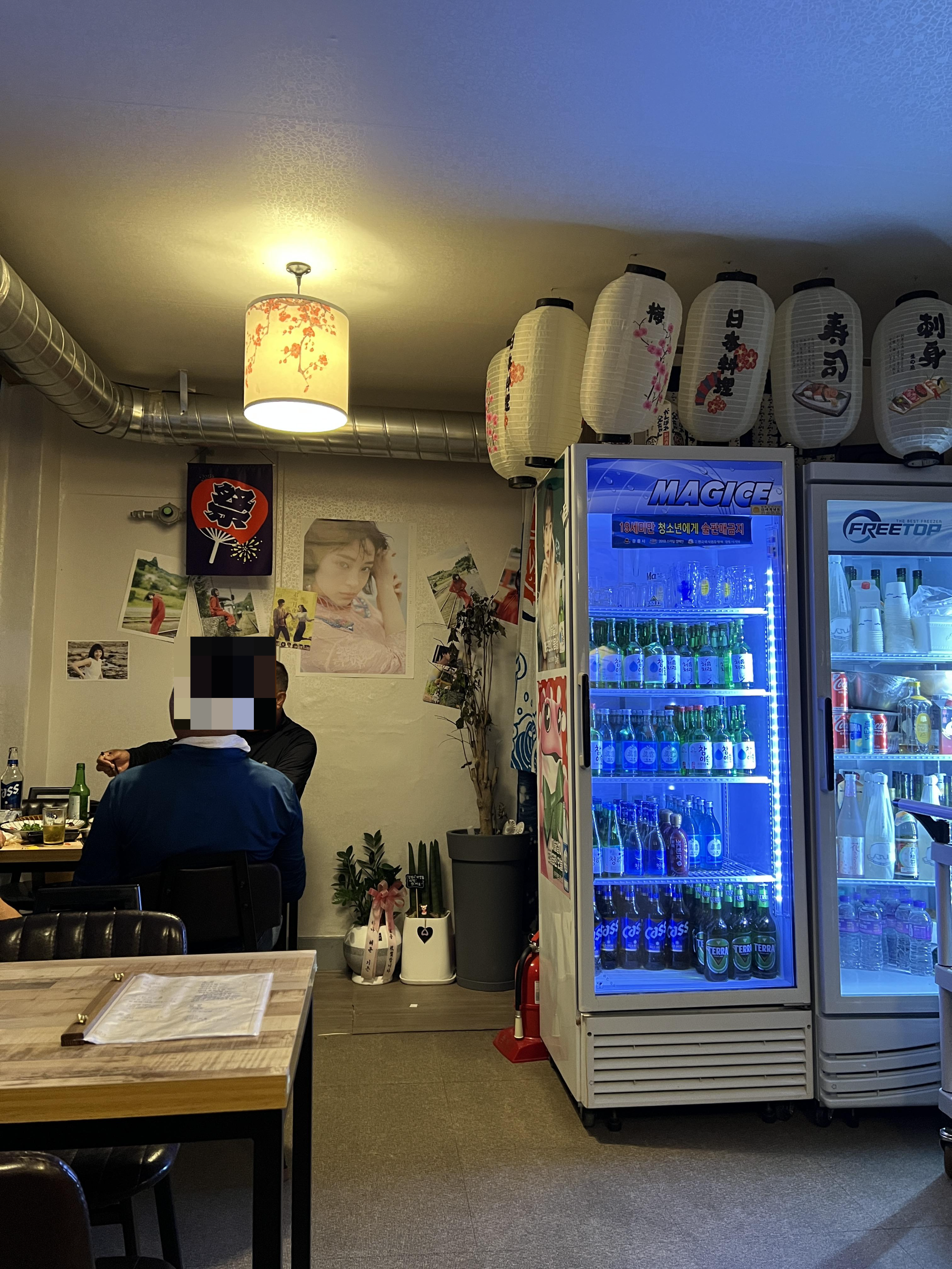 토라스시 내부는 아담하고 선술집 느낌이라 위에 전시해둔 사케에 눈길이갔는데 일행들도 바로 사케부터 시켜먹자네? 개2득
