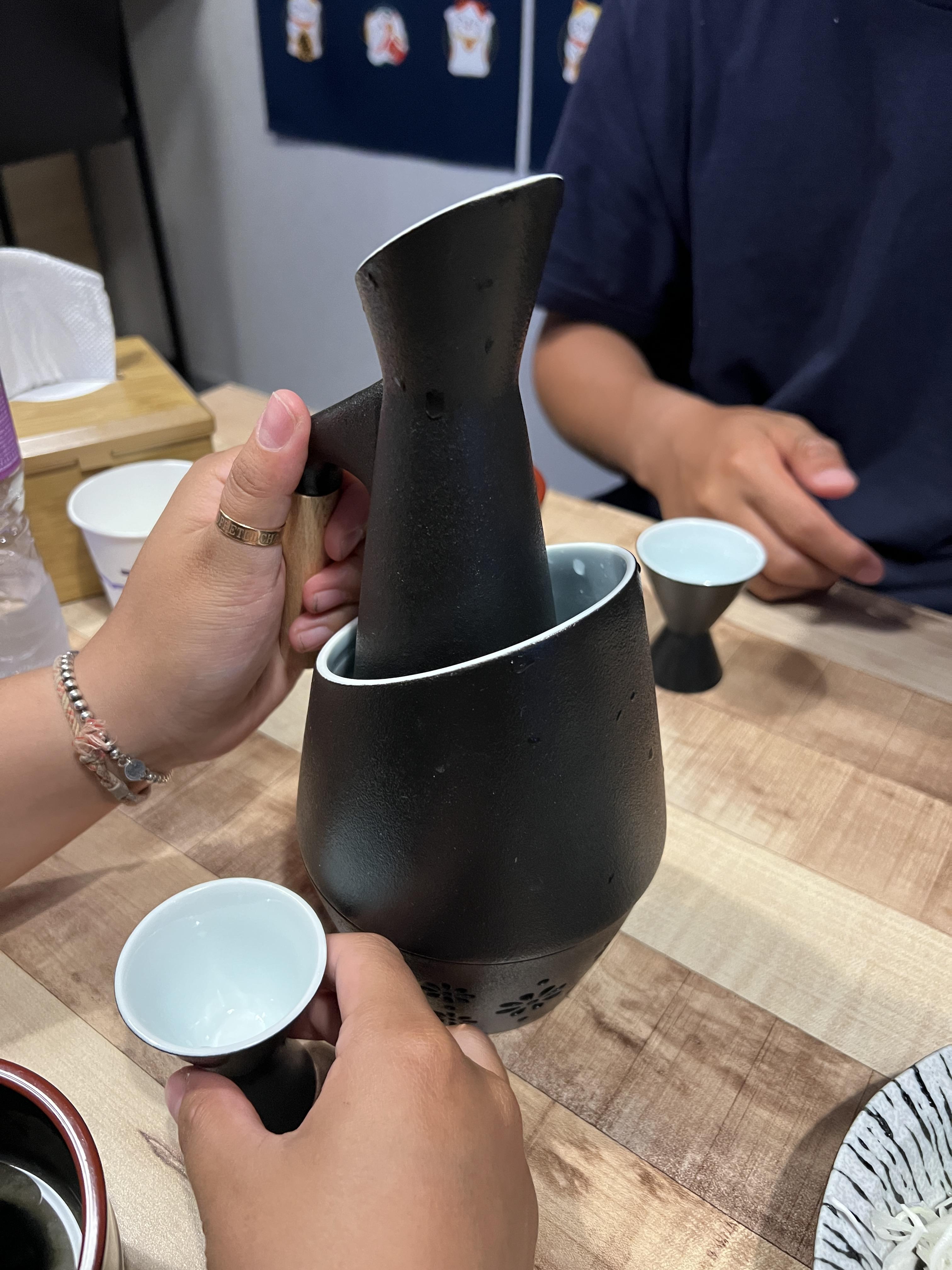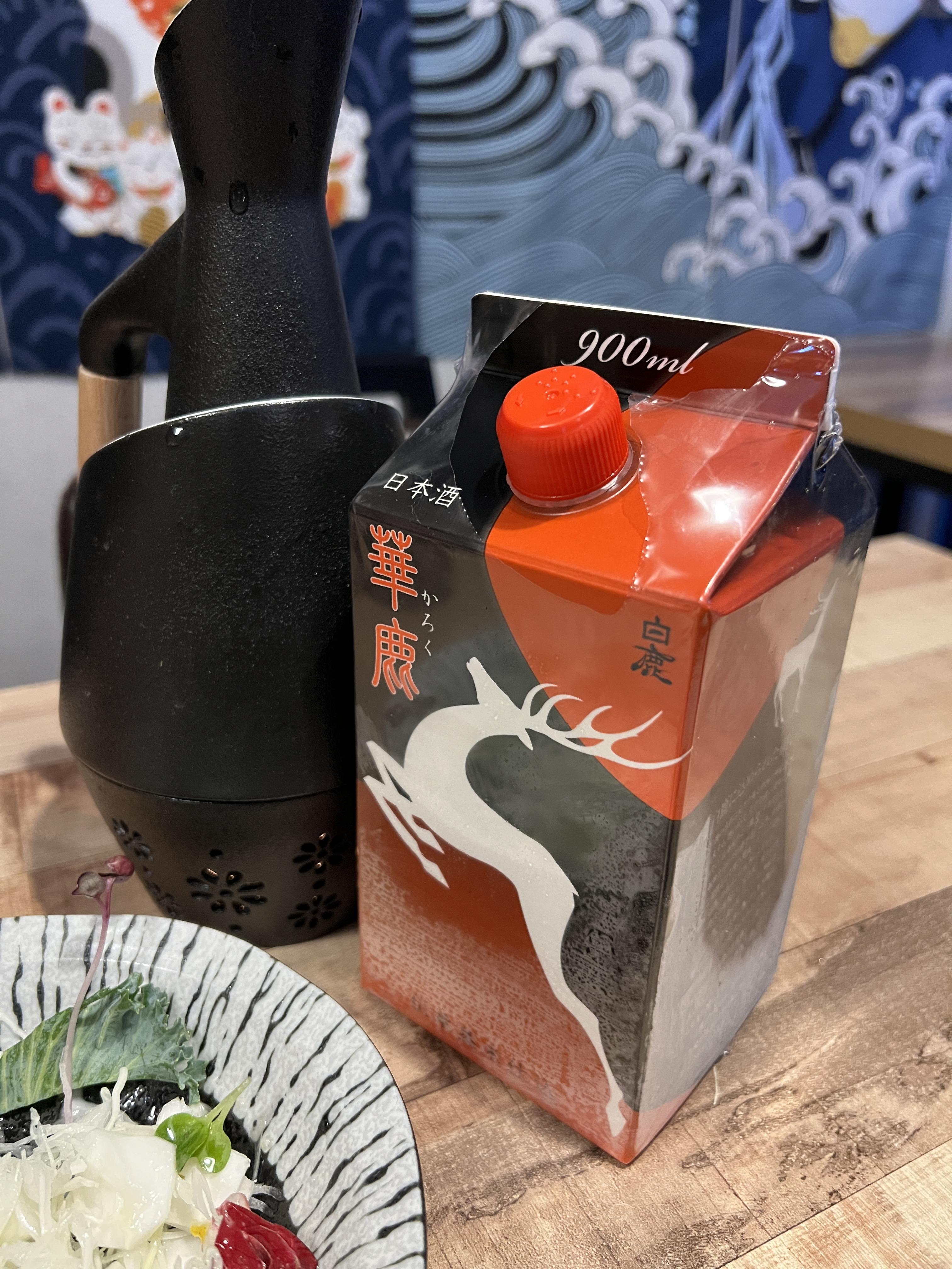 우리가 시킨 사케 하쿠시카 카로쿠! 반은 온사케로 해달라고했더니 이렇게 반절은 따뜻한 병에 담아주셨다 : ) 개인적으로 차가운것보다 따뜻하게먹는게 뭔가 있어보이고 새로운느낌이라 맛있었음 ㅎㅎ