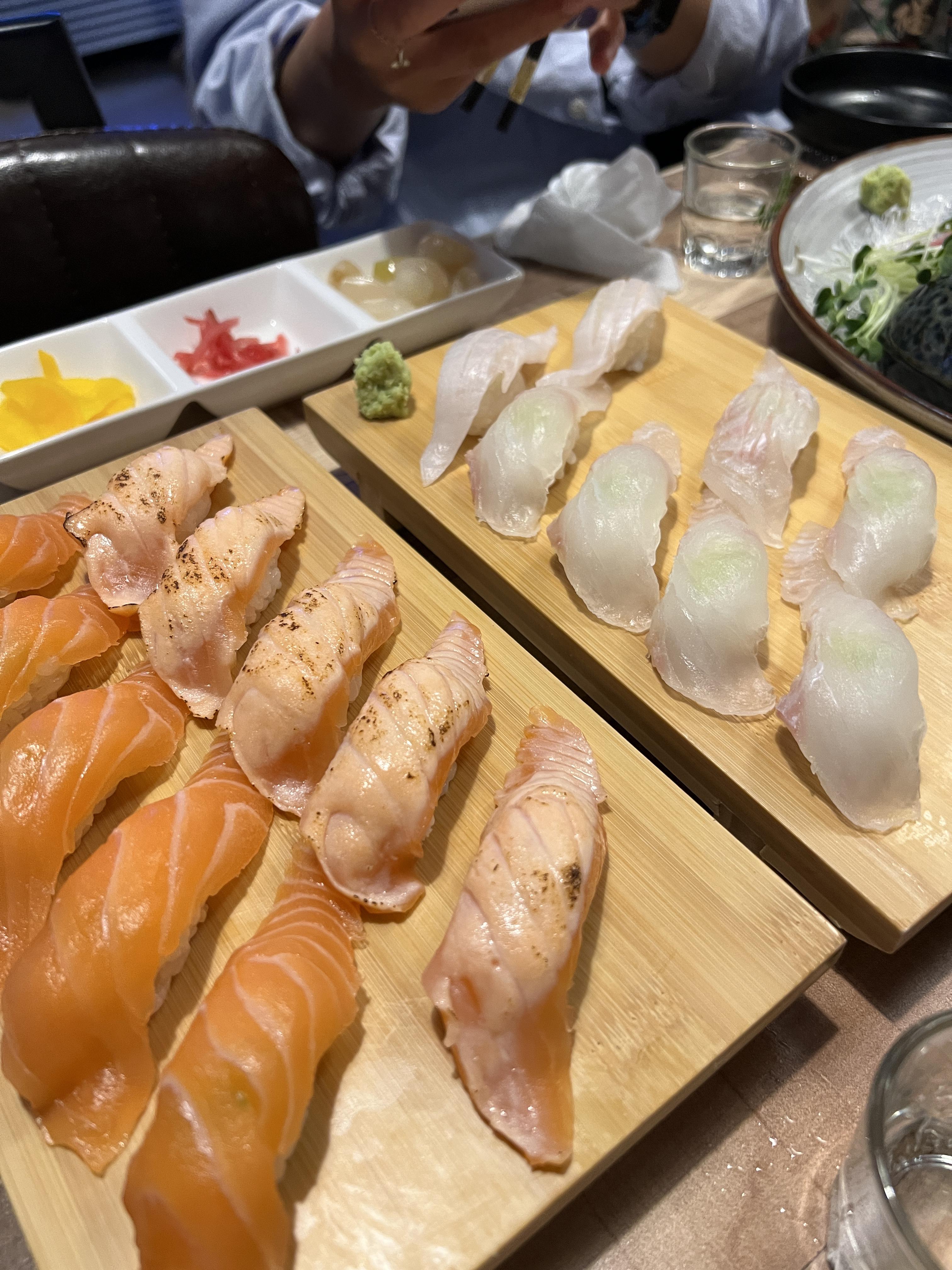 마지막으로 나온 연어초밥과 광어초밥! 연어초밥은 반은 토치로 구워서 주실 수 있냐고했는데 바로 해주셨음 : )