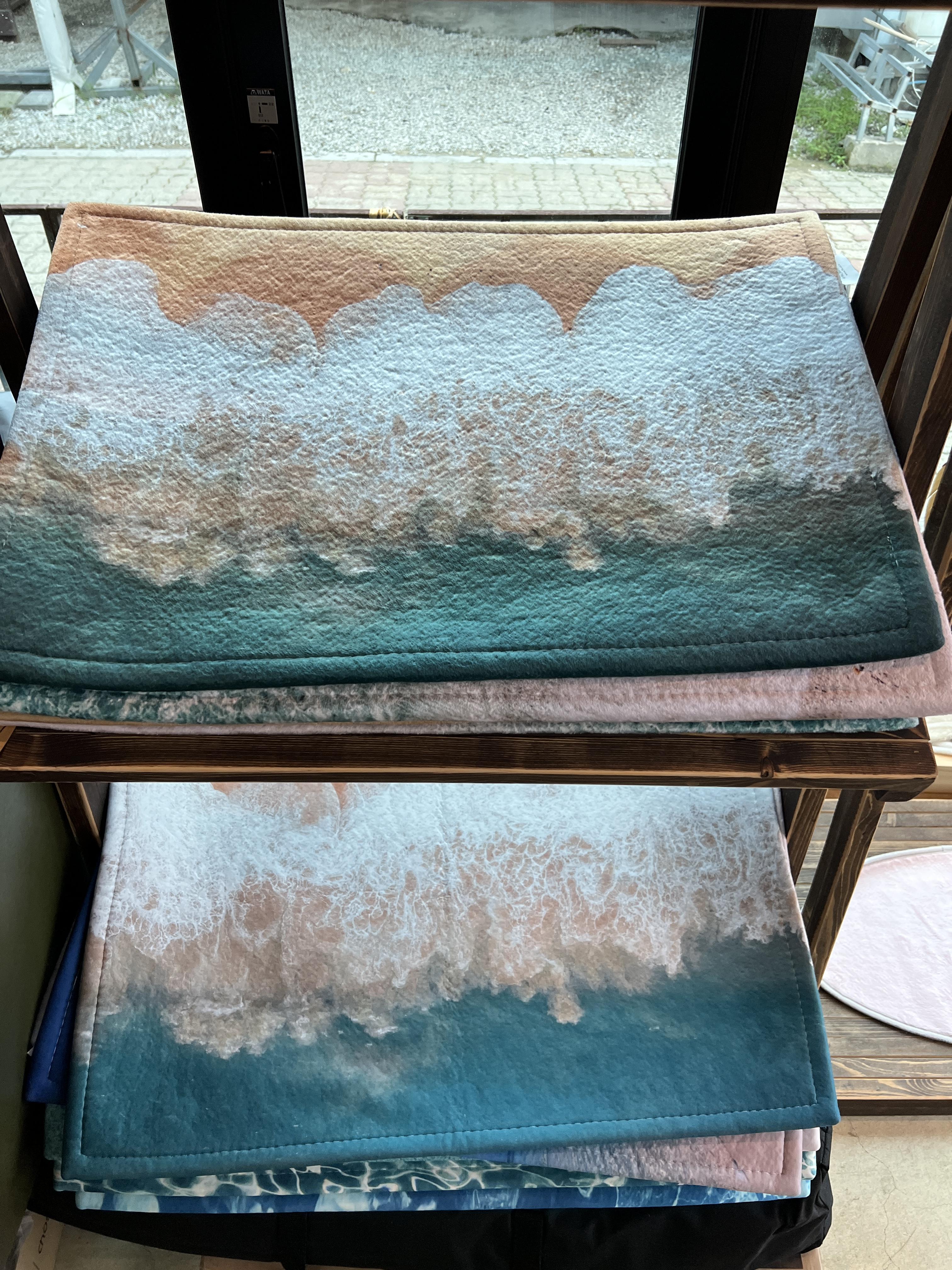 샵 한켠에 있는 카페트, 네오프렌 재질의 러그와 발판 그리고 모빌들