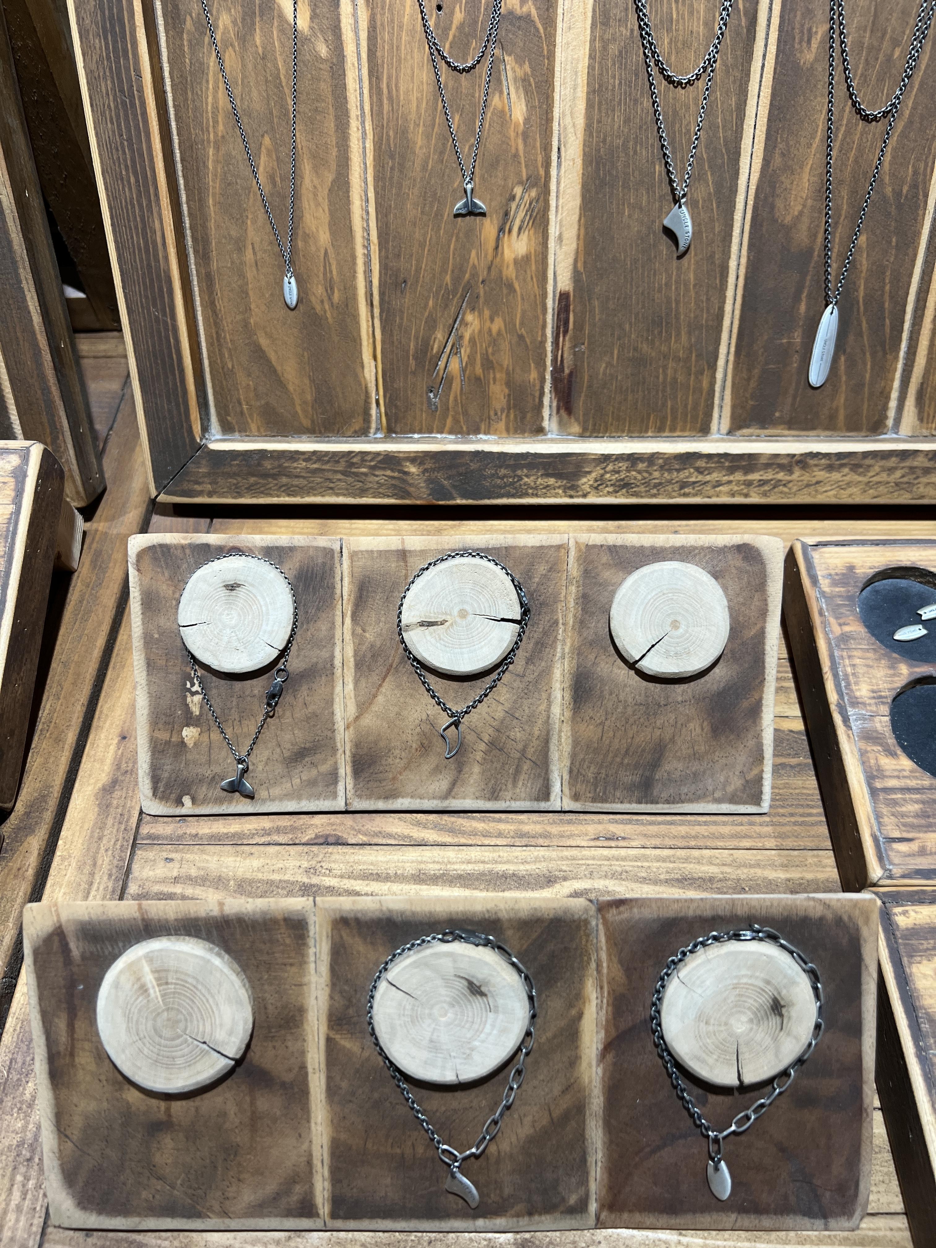 고래꼬리 목걸이 39,- 보드 목걸이 29,- 핀 목걸이 29,-