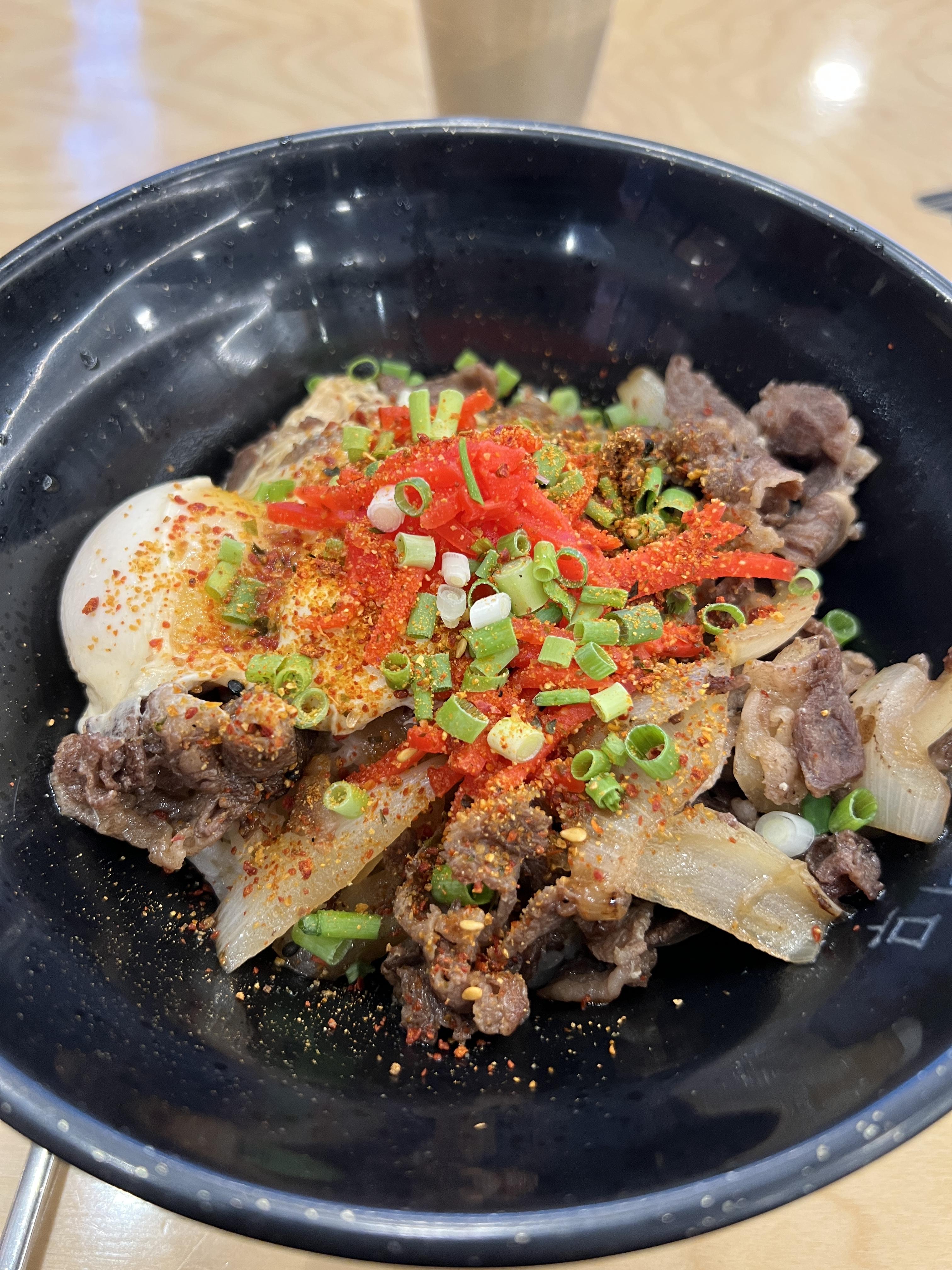 소고기 + 계란 + 양파 조합 덮밥! 성인 남자기준으로는 양이 조금 작은듯한 느낌이었다.