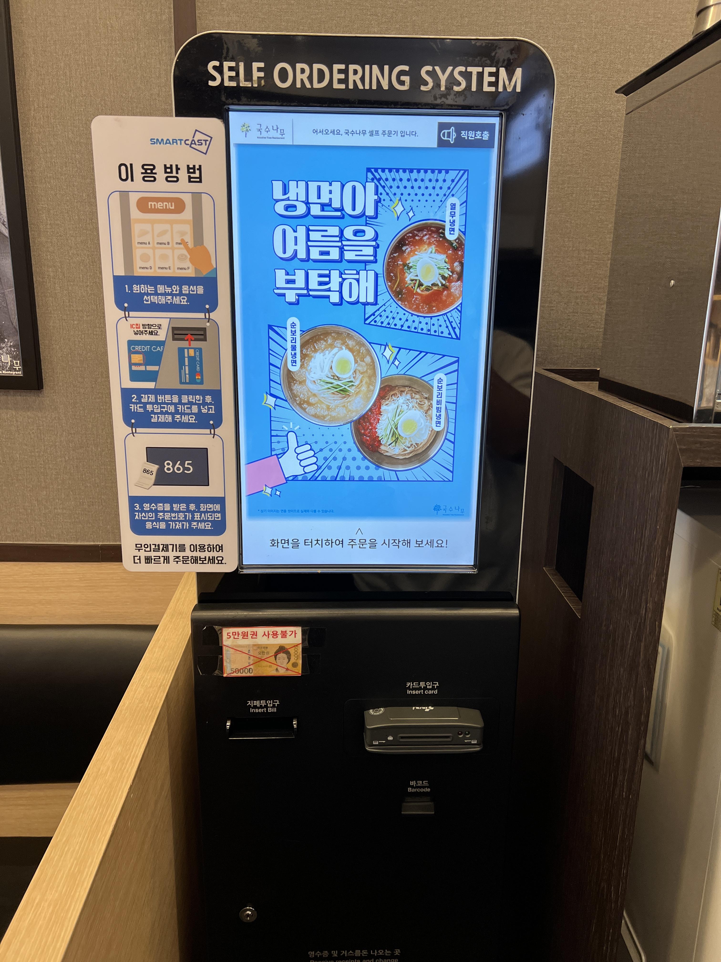 국수나무 주문진점에서는 메뉴 주문은 키오스크에서 가능하다. 요즘은 어딜가든 다 키오스크라 편하다.