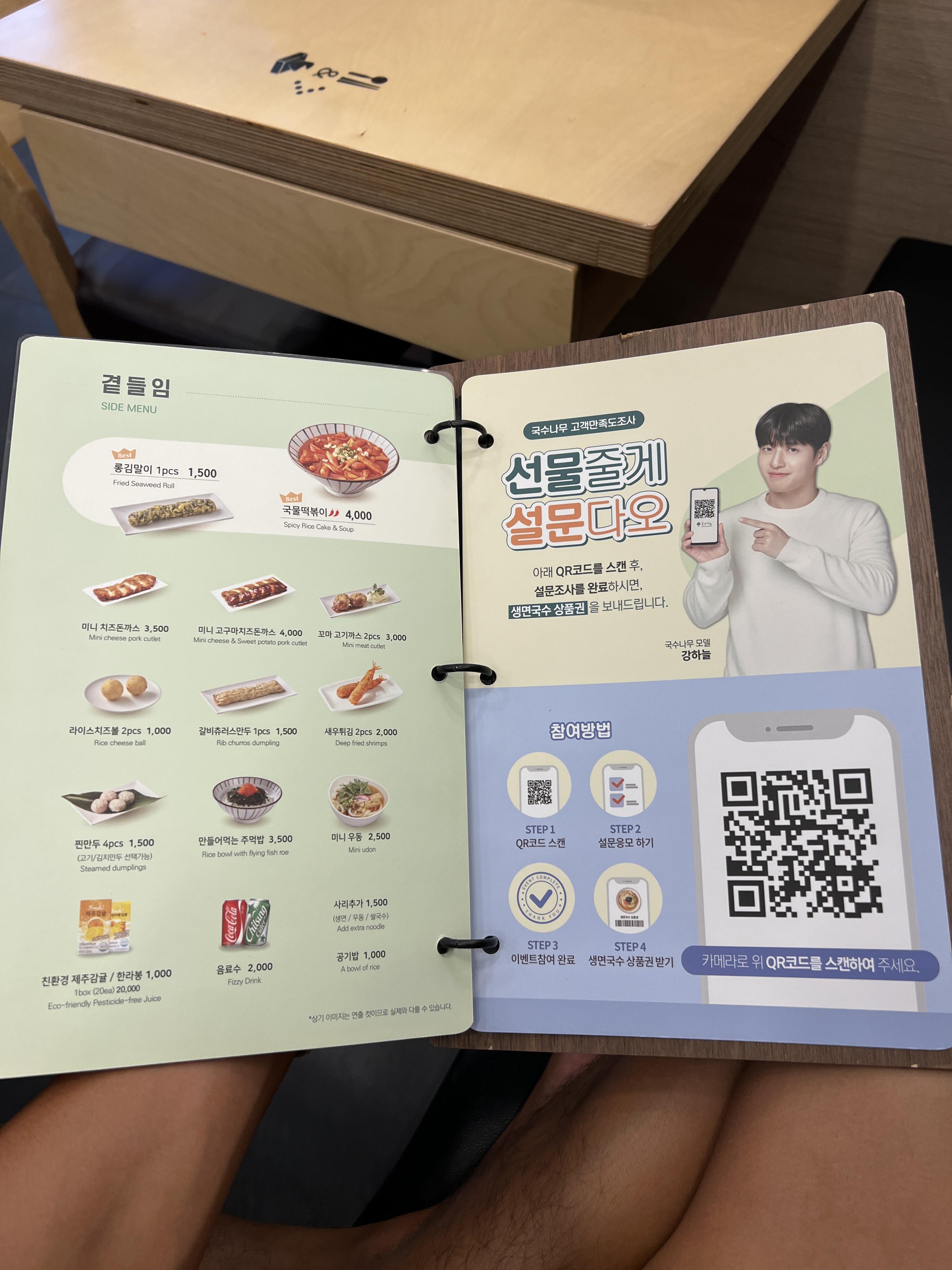 국수나무 모델인 강하늘 사진이 붙어있는데 깔끔하고 하얀 느낌의 이미지가 어떤 식당 모델로도 잘 어울릴듯