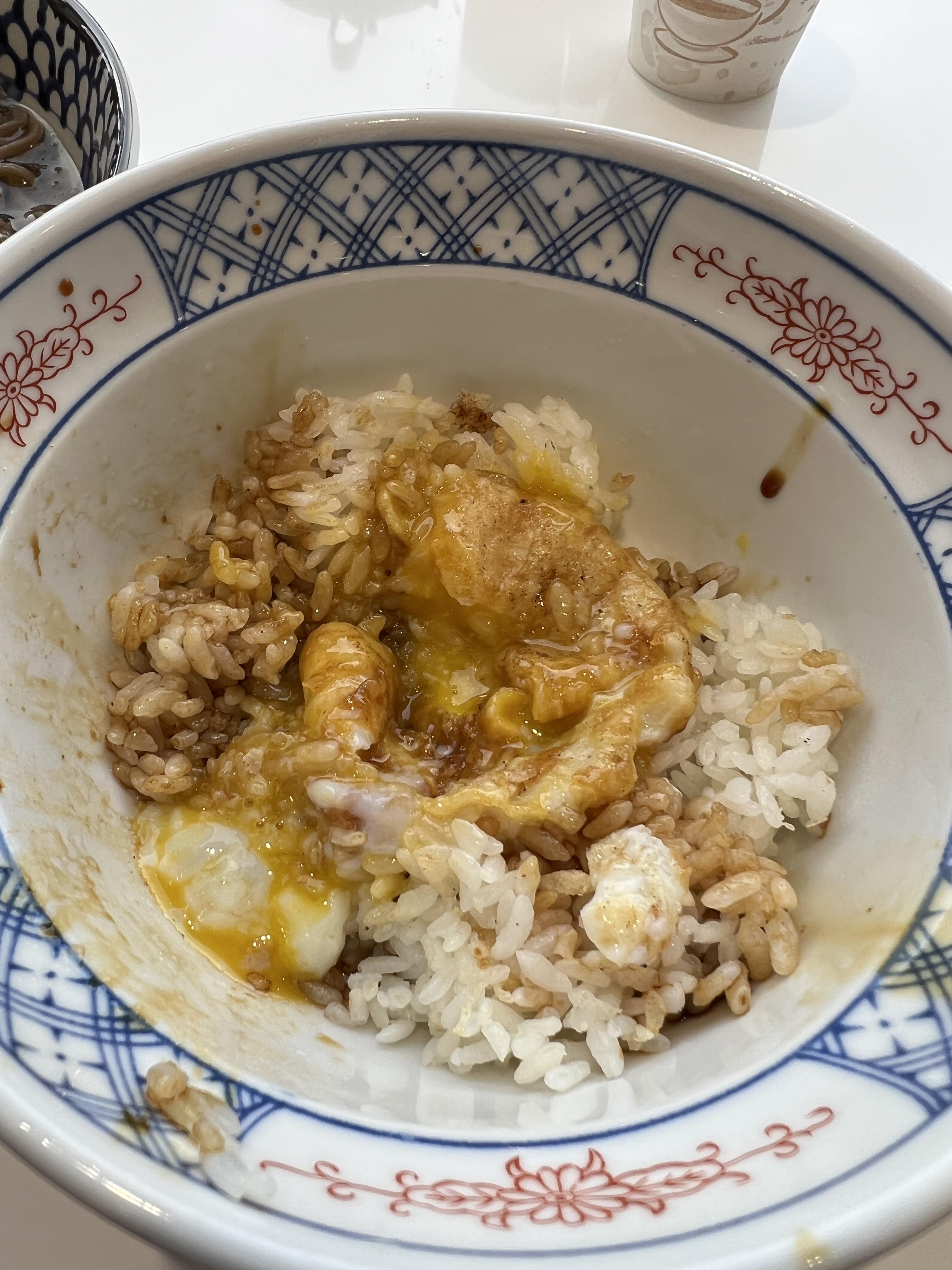 튀김들을 같이나온 그릇에 덜어두고 밥과 계란을 쉐킷! 장국을 한숟가락 넣으니 딱 좋아