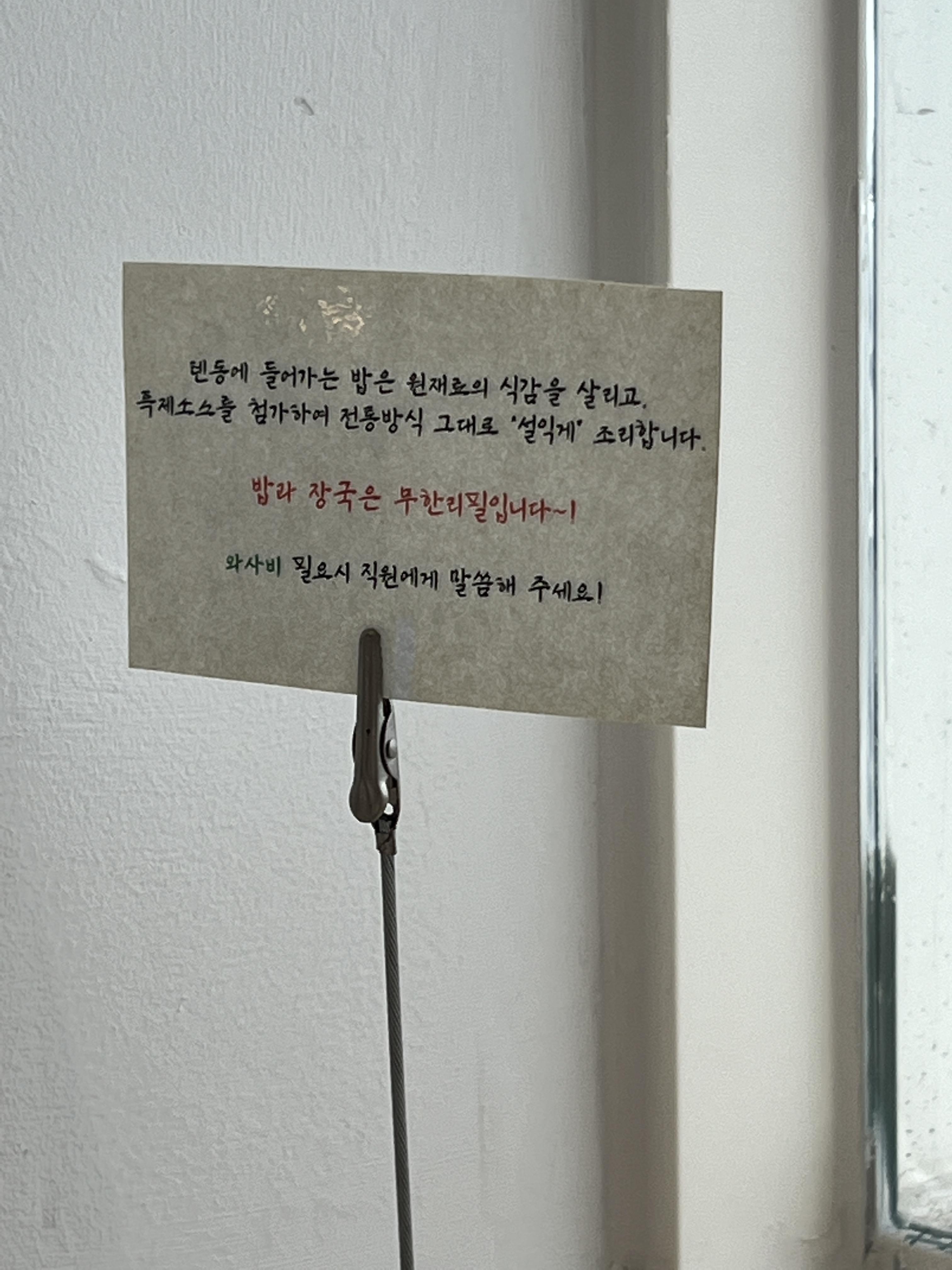 밥과 장국은 무한리필입니다.