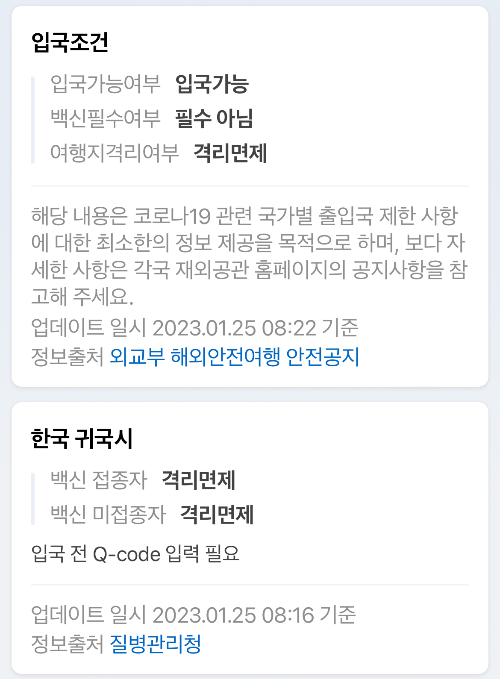 (여행자 입국 신고서 DPD는 22년 7월 폐지)