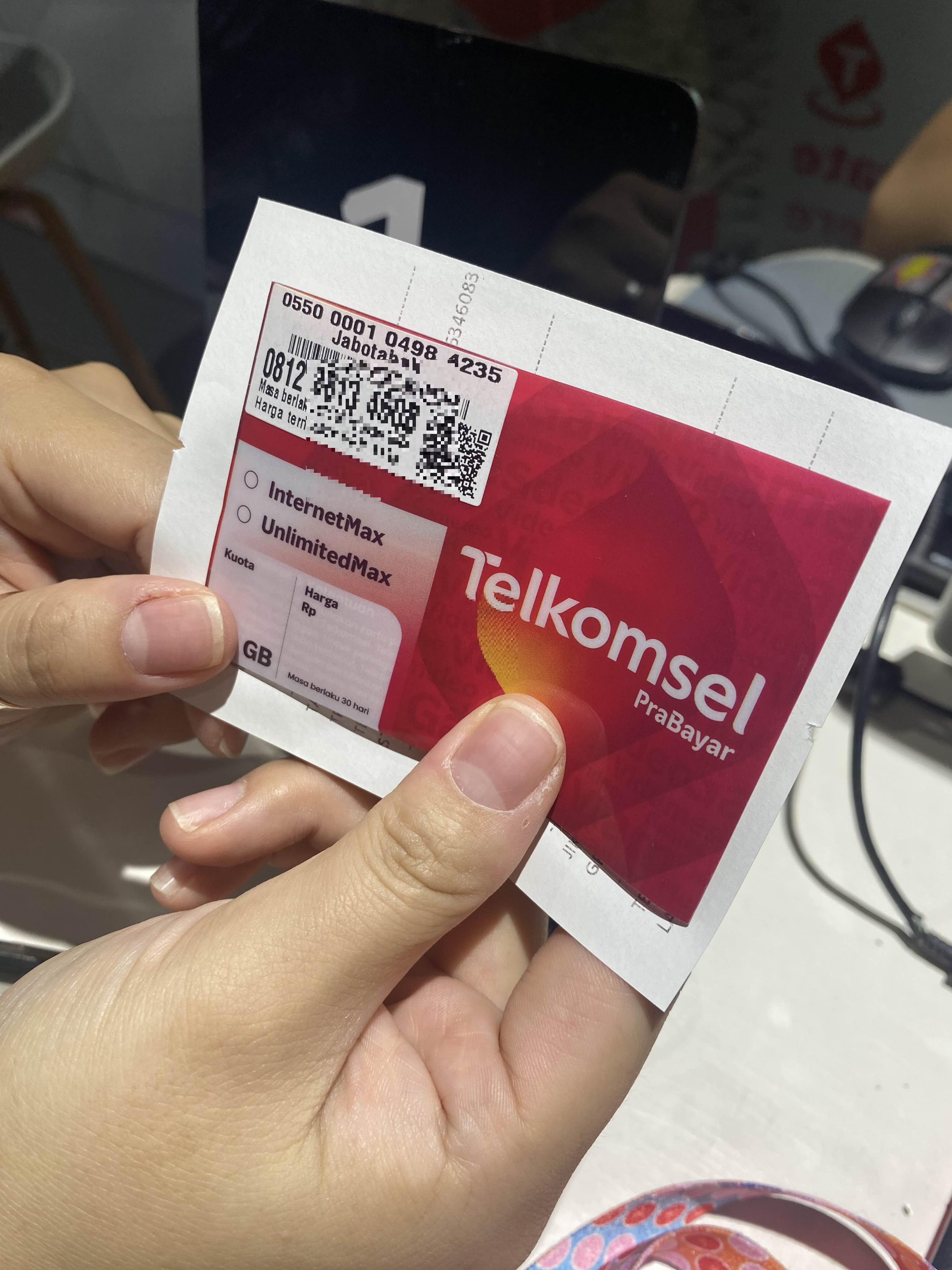 유심 심카드는 유심가격 포함 한달 30일 기준 200K 한화 약 17,000원정도에 15GB 데이터 제공이었다. 나는 통화나 문자 이런거 필요없고 데이터만 되면되고 휴대폰 어플 telcomsel을 통해서 탑업(충전)이 가능해 제일 낮은 요금제를 쓰려고했으나 공항 텔콤셀에는 딱 한가지 플랜밖에 없다고 했음,, 그래서 어쩔 수 없이 200k로 심카드 구매완료.