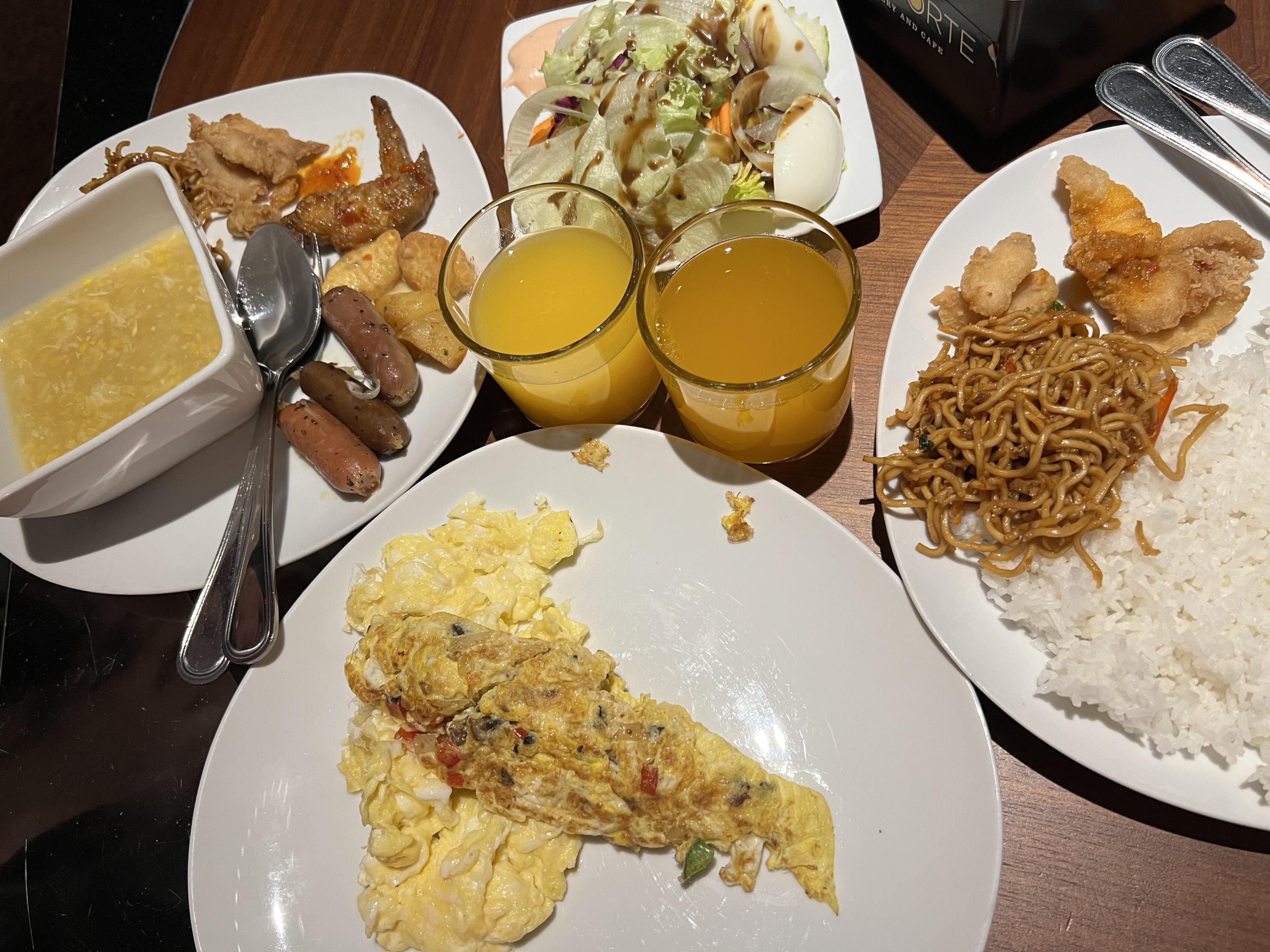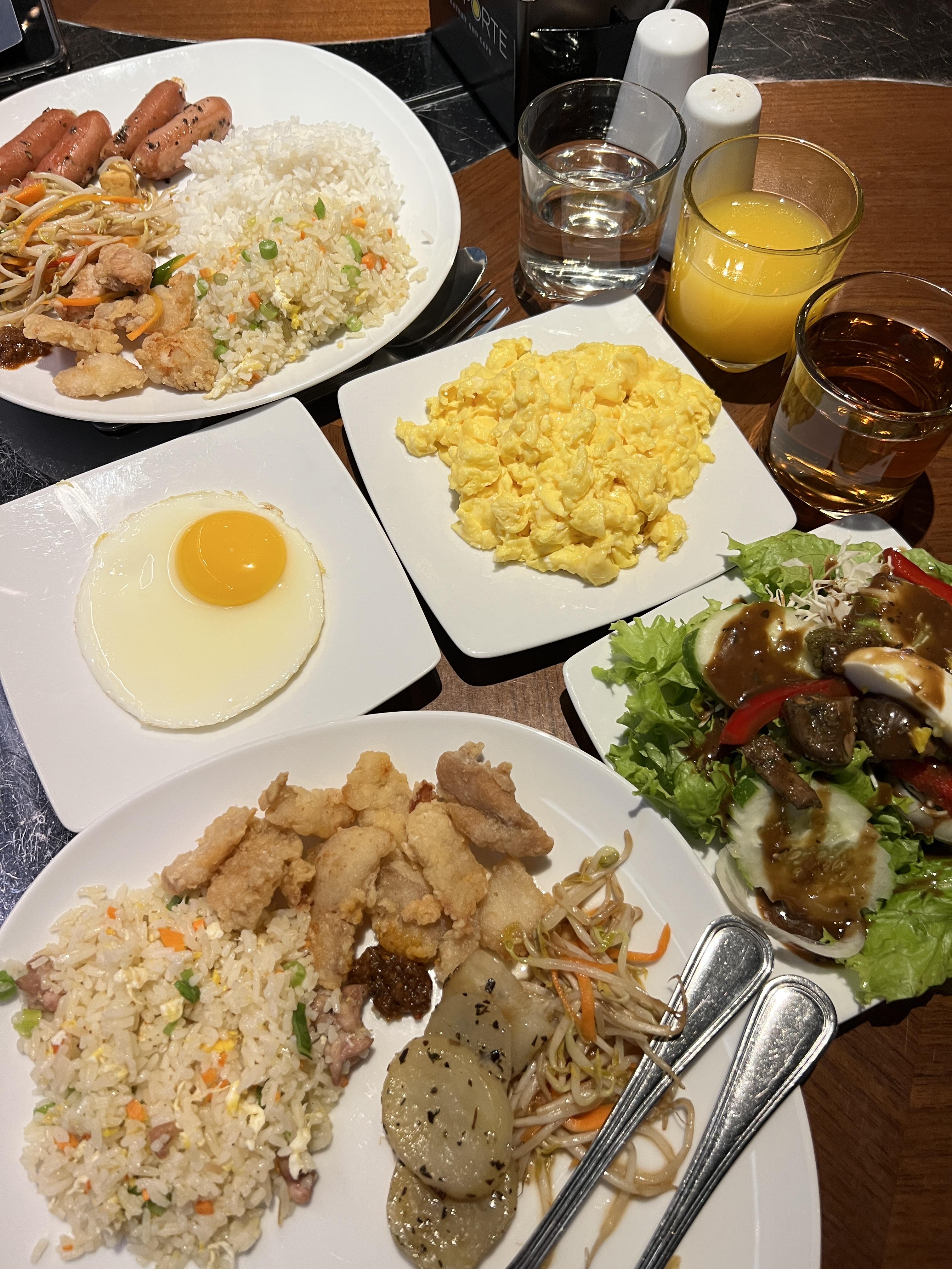 둘째날 조식! 흰 쌀밥대신 볶음밥과 야채들이 조금 바뀌고 비슷했는데 첫날에는 무슨맛일지 몰라 조금씩 담았다면 둘째날에는 거하게 담아옴ㅋㅋ 사과주스와 오렌지주스도 덤으로,,